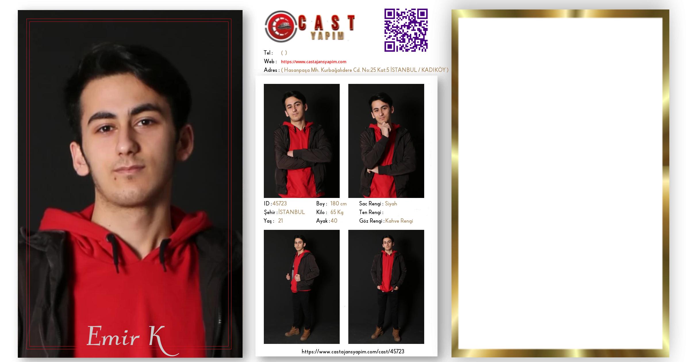 Merhaba, ben Emir K. İSTANBUL şehrinde yaşıyorum ve 21 yaşındayım. Genel özelliklerim arasında boyum 180 cm, kilom 65 kg, saç rengim Siyah, göz rengim Kahve Rengi.