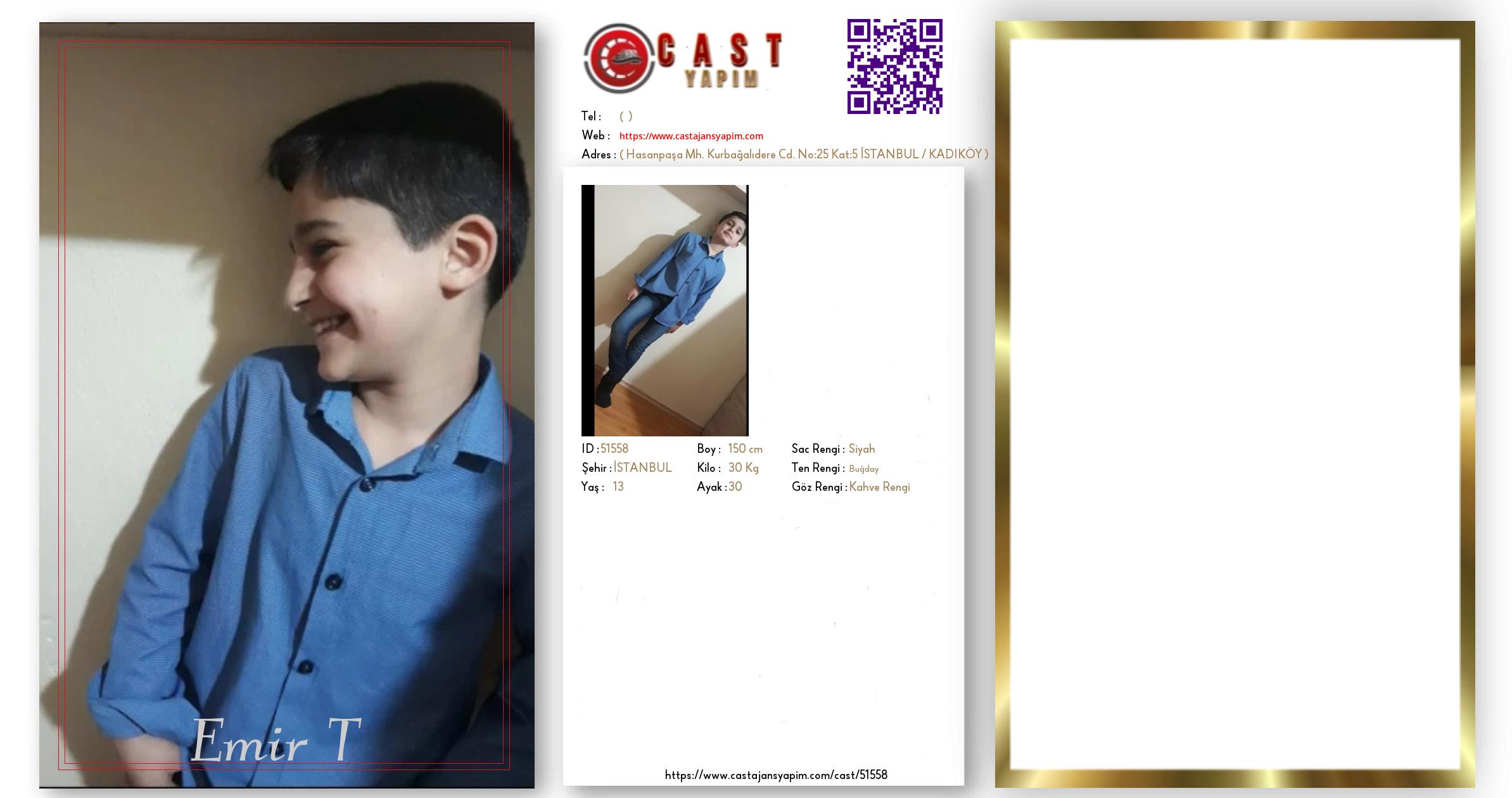 Merhaba, ben Emir Muhammed. İSTANBUL şehrinde yaşıyorum ve 13 yaşındayım. Genel özelliklerim arasında boyum 150 cm, kilom 30 kg, saç rengim Siyah, göz rengim Kahve Rengi, ten rengim Buğday.