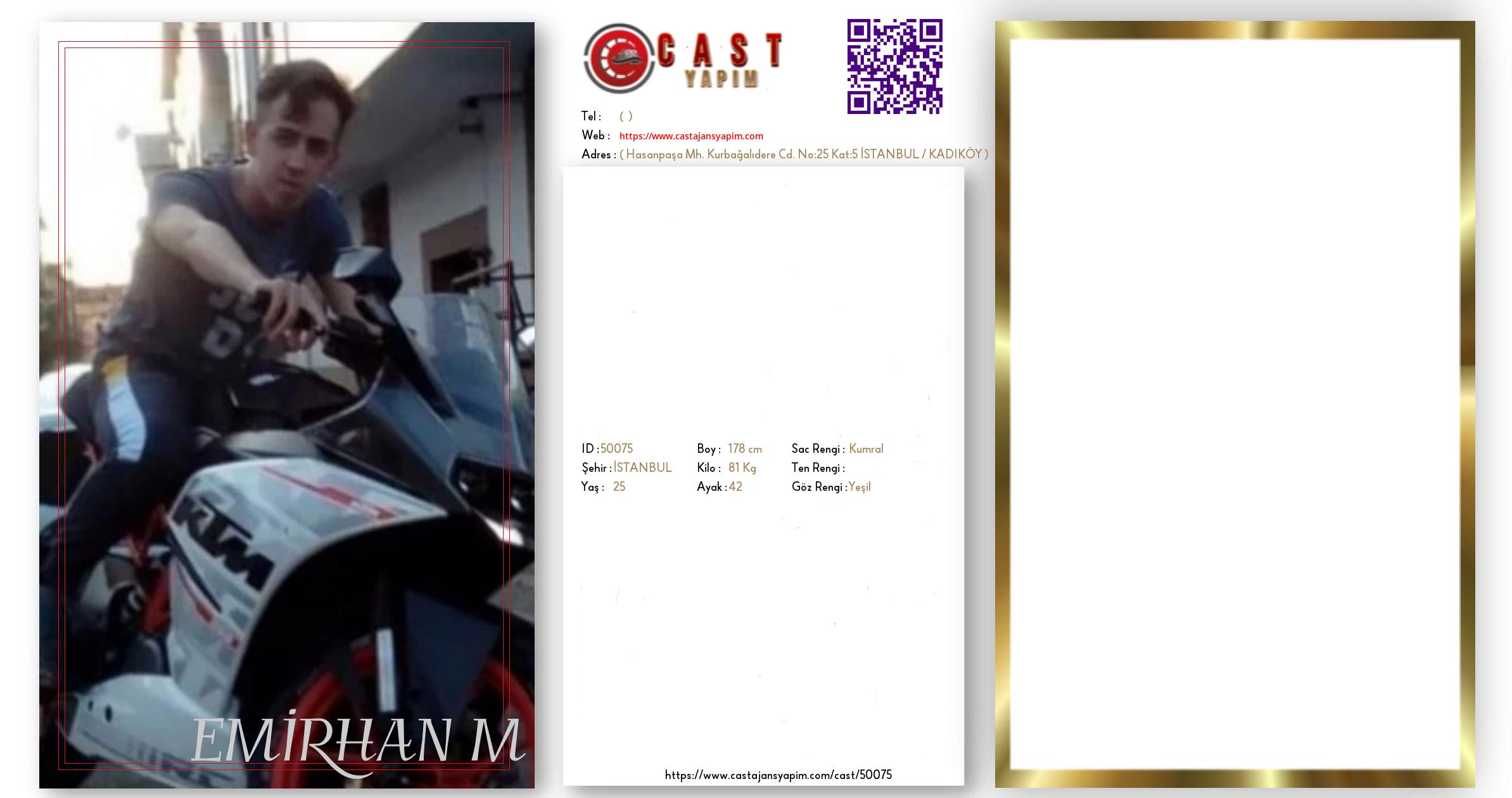 Merhaba, ben EMİRHAN. İSTANBUL şehrinde yaşıyorum ve 25 yaşındayım. Genel özelliklerim arasında boyum 178 cm, kilom 81 kg, saç rengim Kumral, göz rengim Yeşil.
