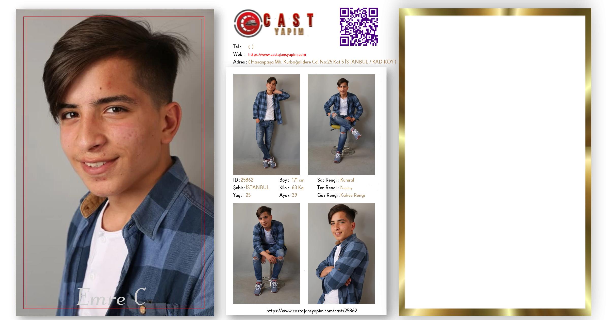 Merhaba, ben Emre C. İSTANBUL şehrinde yaşıyorum ve 25 yaşındayım. Genel özelliklerim arasında boyum 171 cm, kilom 63 kg, saç rengim Kumral, göz rengim Kahve Rengi, ten rengim Buğday.