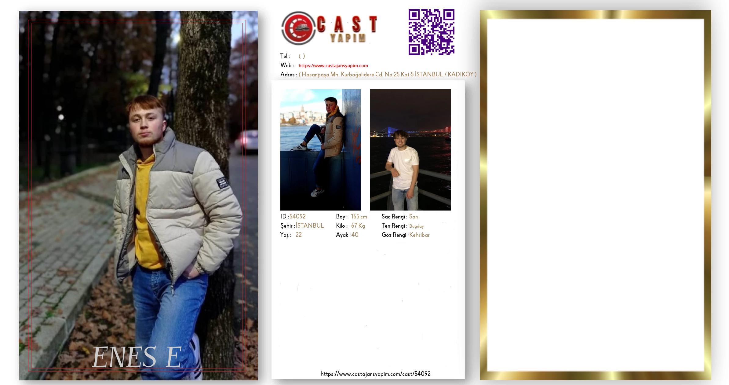 Merhaba, ben ENES E. İSTANBUL şehrinde yaşıyorum ve 22 yaşındayım. Genel özelliklerim arasında boyum 165 cm, kilom 67 kg, saç rengim Sarı, göz rengim Kehribar, ten rengim Buğday.