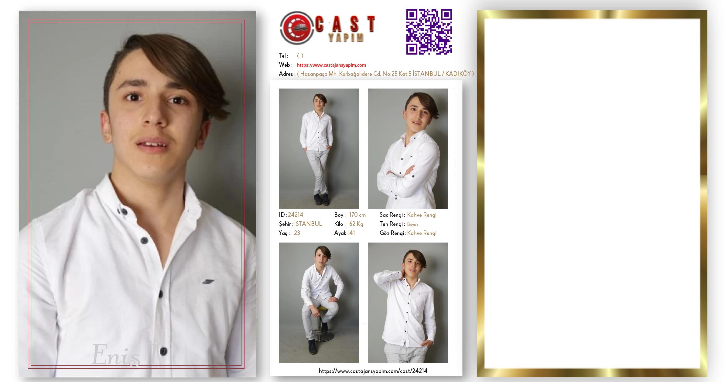Merhaba, ben Enis. İSTANBUL şehrinde yaşıyorum ve 23 yaşındayım. Genel özelliklerim arasında boyum 170 cm, kilom 62 kg, saç rengim Kahve Rengi, göz rengim Kahve Rengi, ten rengim Beyaz.