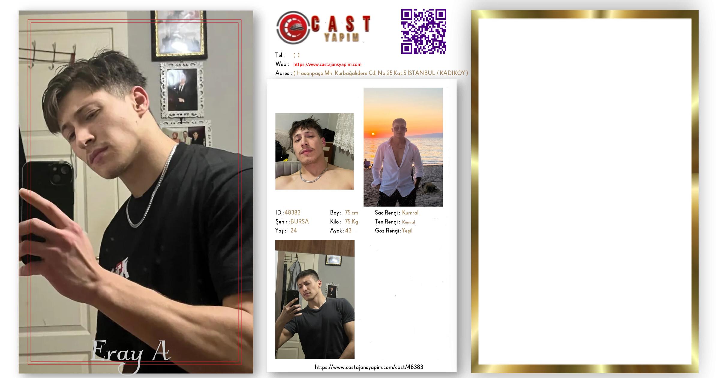Merhaba, ben Eray A. BURSA şehrinde yaşıyorum ve 24 yaşındayım. Genel özelliklerim arasında boyum 175 cm, kilom 75 kg, saç rengim Kumral, göz rengim Yeşil, ten rengim Kumral.