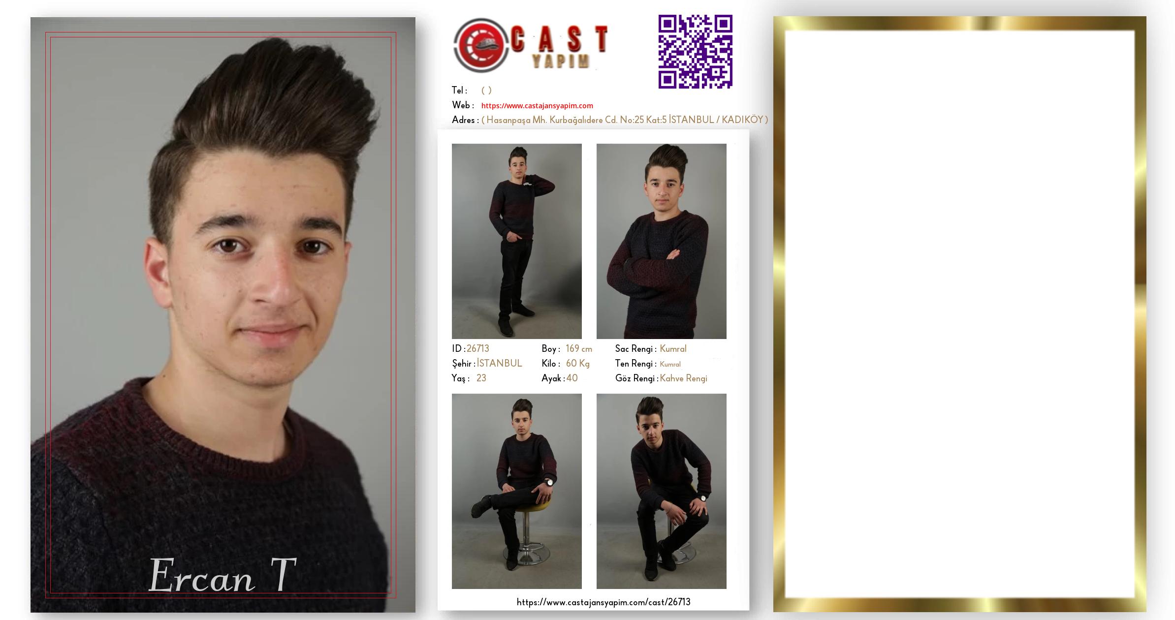 Merhaba, ben Ercan. İSTANBUL şehrinde yaşıyorum ve 23 yaşındayım. Genel özelliklerim arasında boyum 169 cm, kilom 60 kg, saç rengim Kumral, göz rengim Kahve Rengi, ten rengim Kumral.
