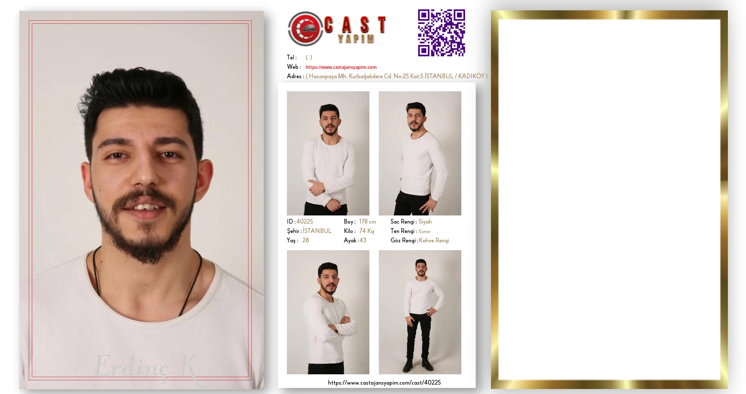 Merhaba, ben Erdinç K. İSTANBUL şehrinde yaşıyorum ve 28 yaşındayım. Genel özelliklerim arasında boyum 178 cm, kilom 74 kg, saç rengim Siyah, göz rengim Kahve Rengi, ten rengim Esmer.