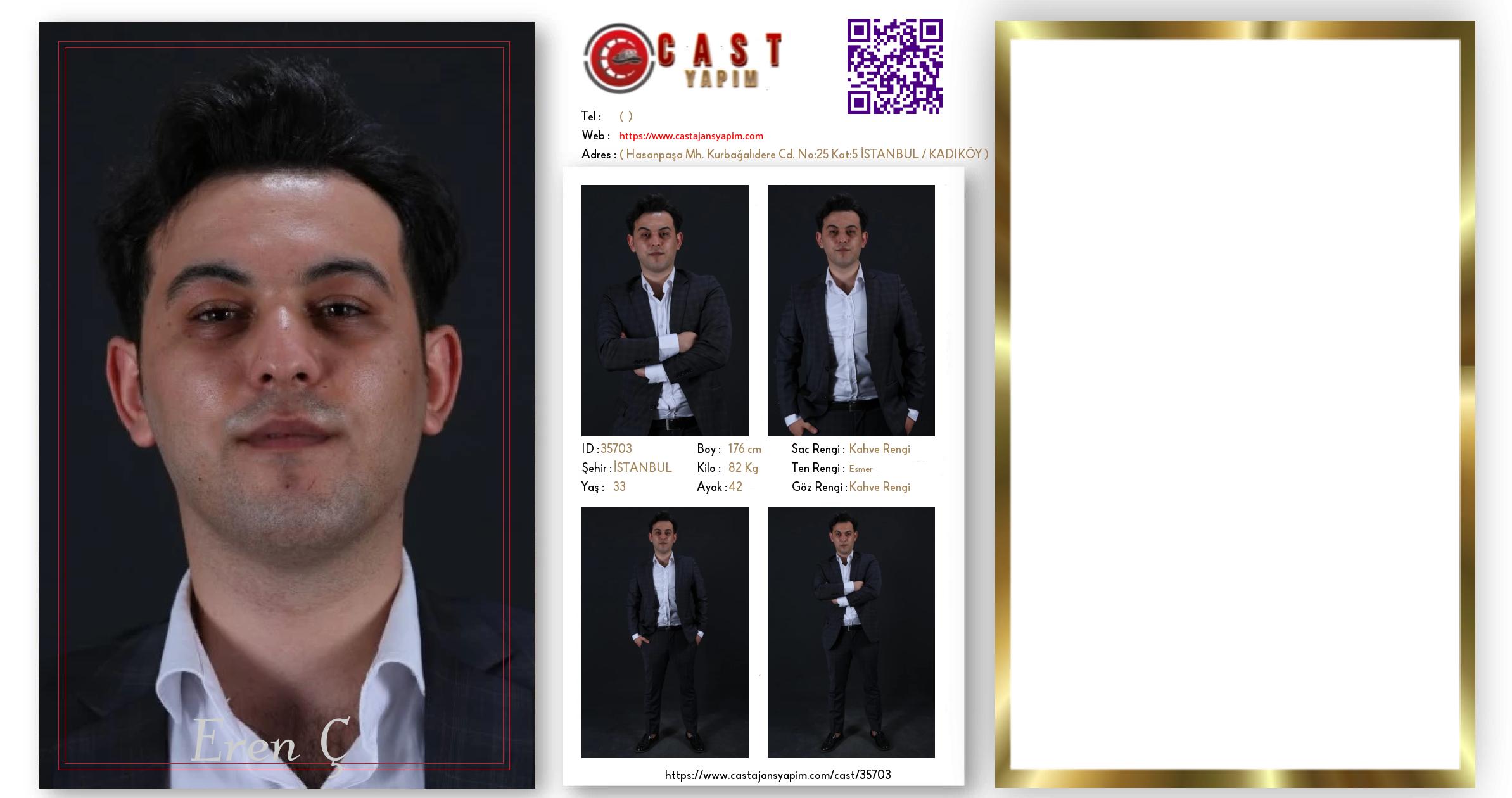 Merhaba, ben Eren Ç. İSTANBUL şehrinde yaşıyorum ve 33 yaşındayım. Genel özelliklerim arasında boyum 176 cm, kilom 82 kg, saç rengim Kahve Rengi, göz rengim Kahve Rengi, ten rengim Esmer.