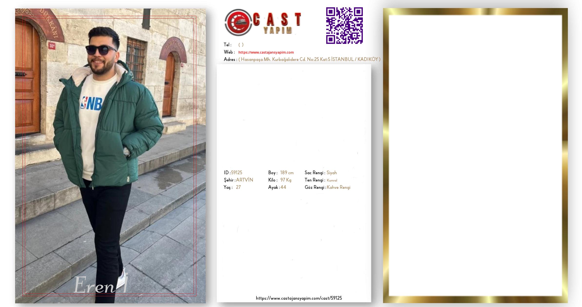 Merhaba, ben Eren Can. ARTVİN şehrinde yaşıyorum ve 27 yaşındayım. Genel özelliklerim arasında boyum 189 cm, kilom 97 kg, saç rengim Siyah, göz rengim Kahve Rengi, ten rengim Kumral.