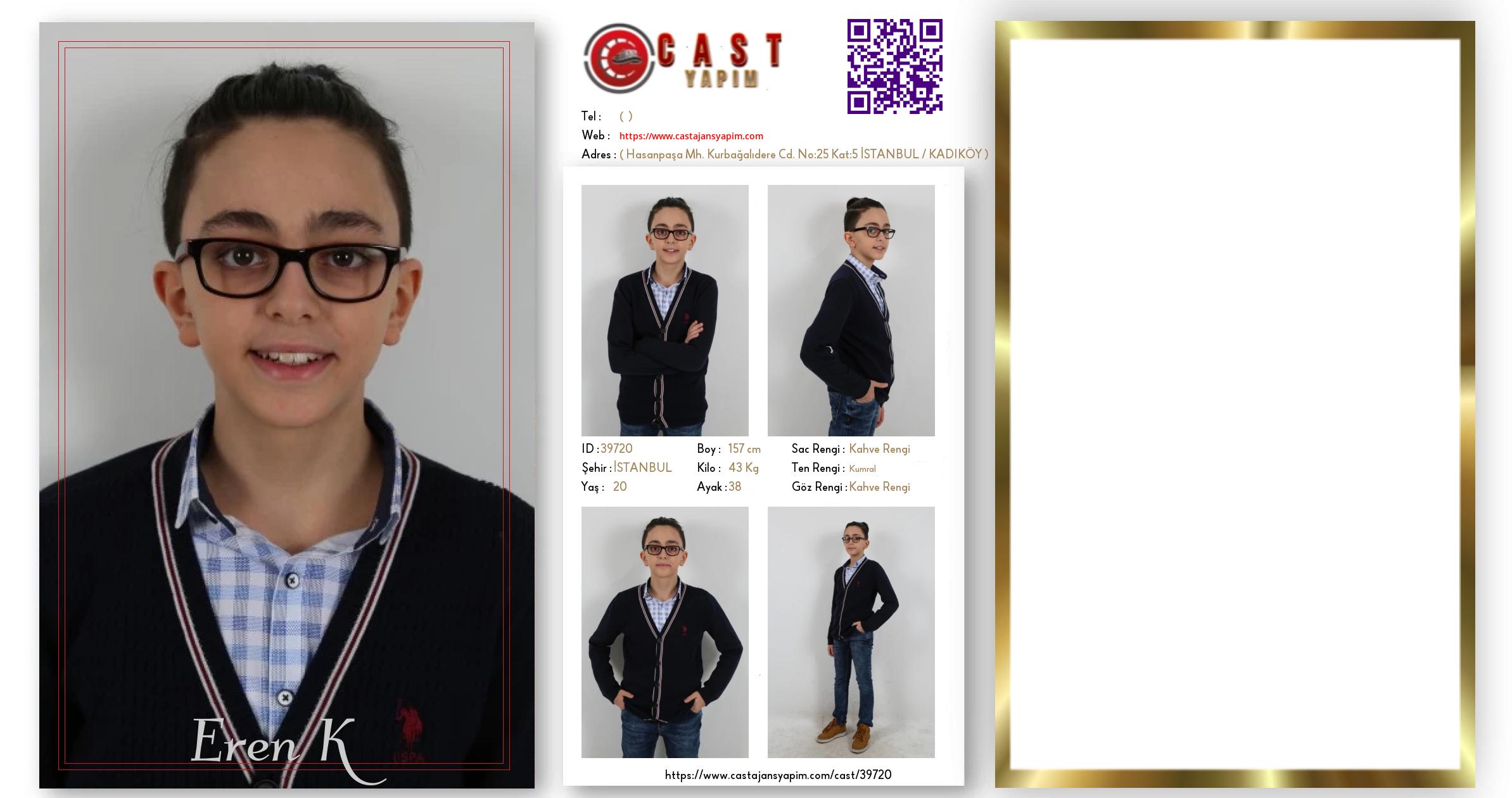 Merhaba, ben Eren K. İSTANBUL şehrinde yaşıyorum ve 20 yaşındayım. Genel özelliklerim arasında boyum 157 cm, kilom 43 kg, saç rengim Kahve Rengi, göz rengim Kahve Rengi, ten rengim Kumral.