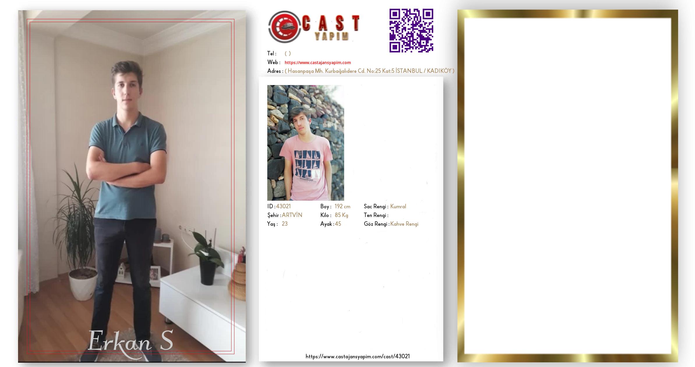 Merhaba, ben Erkan. ARTVİN şehrinde yaşıyorum ve 23 yaşındayım. Genel özelliklerim arasında boyum 192 cm, kilom 85 kg, saç rengim Kumral, göz rengim Kahve Rengi.