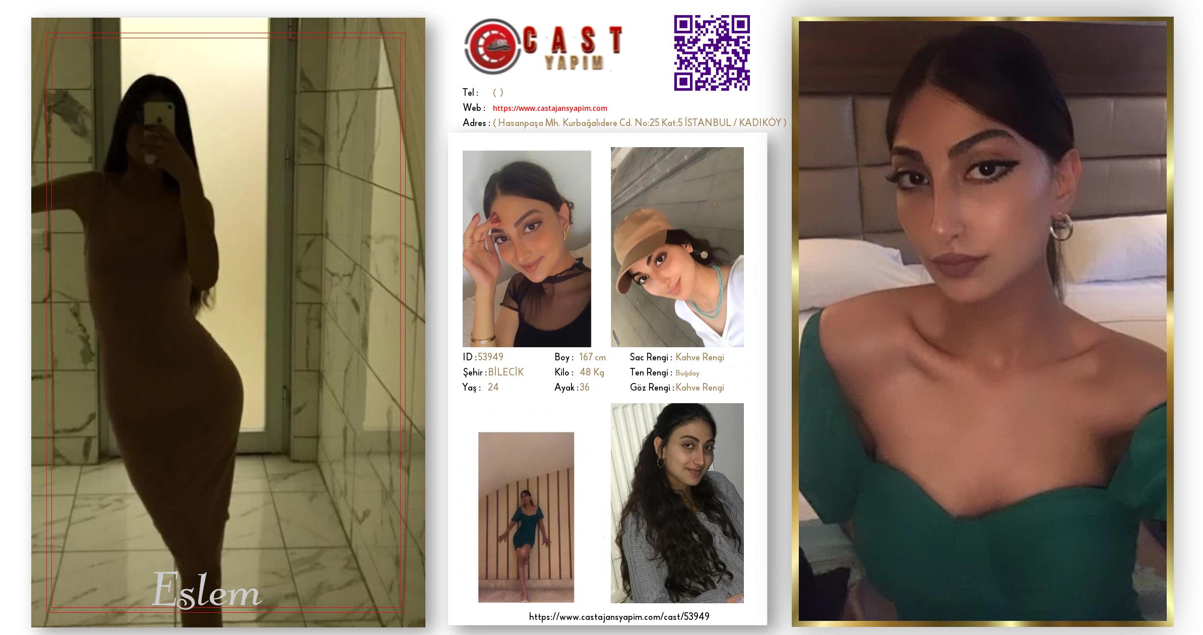 Merhaba, ben Eslem. BİLECİK şehrinde yaşıyorum ve 24 yaşındayım. Genel özelliklerim arasında boyum 167 cm, kilom 48 kg, saç rengim Kahve Rengi, göz rengim Kahve Rengi, ten rengim Buğday.