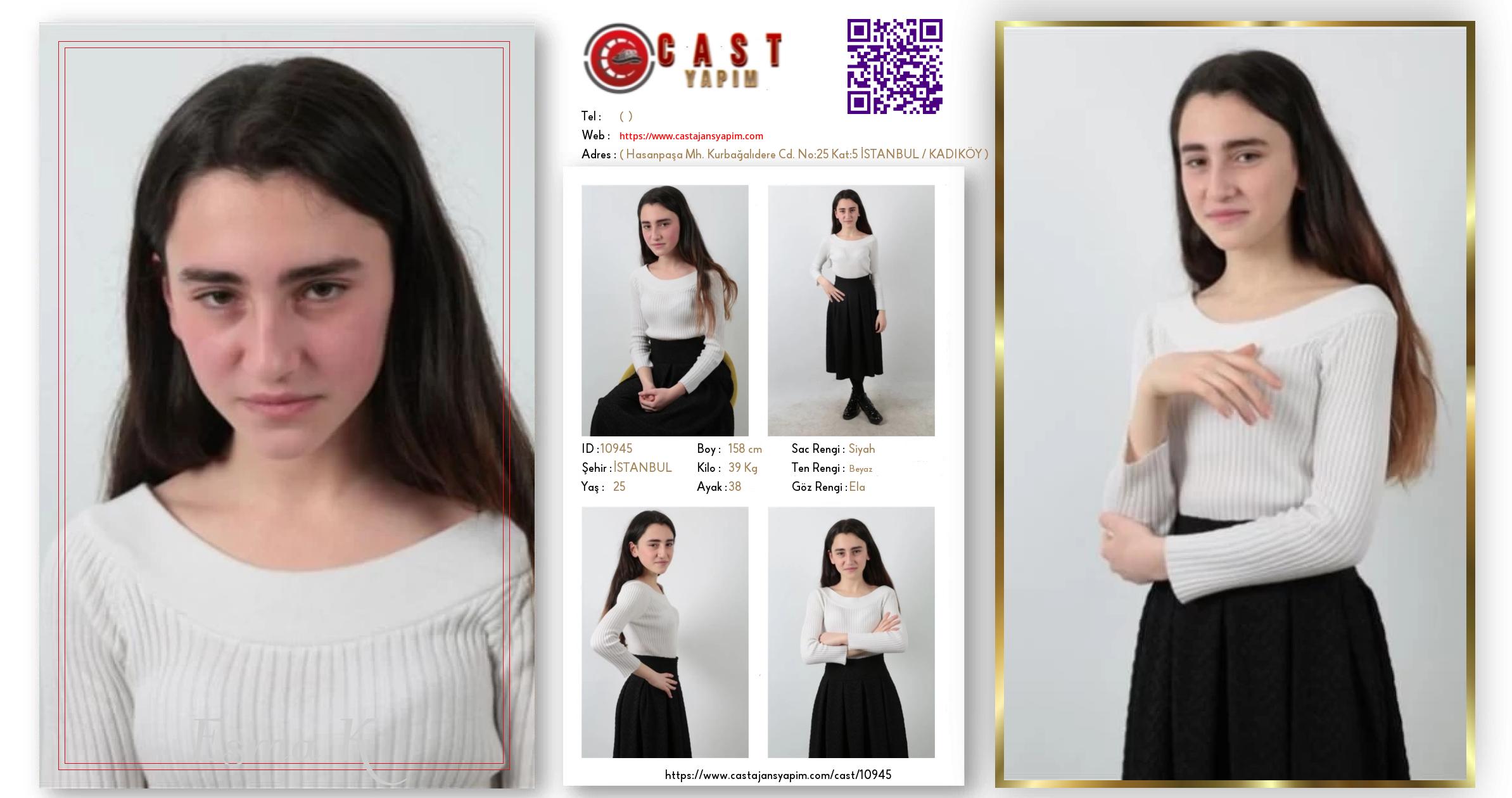 Merhaba, ben Esma K. İSTANBUL şehrinde yaşıyorum ve 25 yaşındayım. Genel özelliklerim arasında boyum 158 cm, kilom 39 kg, saç rengim Siyah, göz rengim Ela, ten rengim Beyaz.