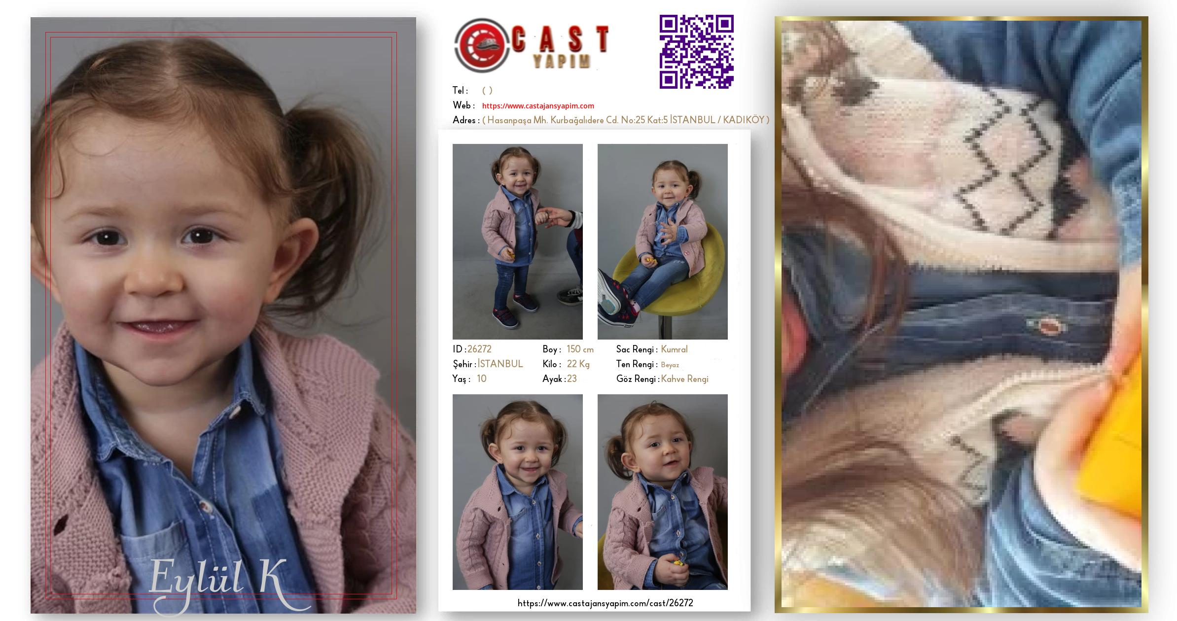 Merhaba, ben Eylül K. İSTANBUL şehrinde yaşıyorum ve 10 yaşındayım. Genel özelliklerim arasında boyum 150 cm, kilom 22 kg, saç rengim Kumral, göz rengim Kahve Rengi, ten rengim Beyaz.