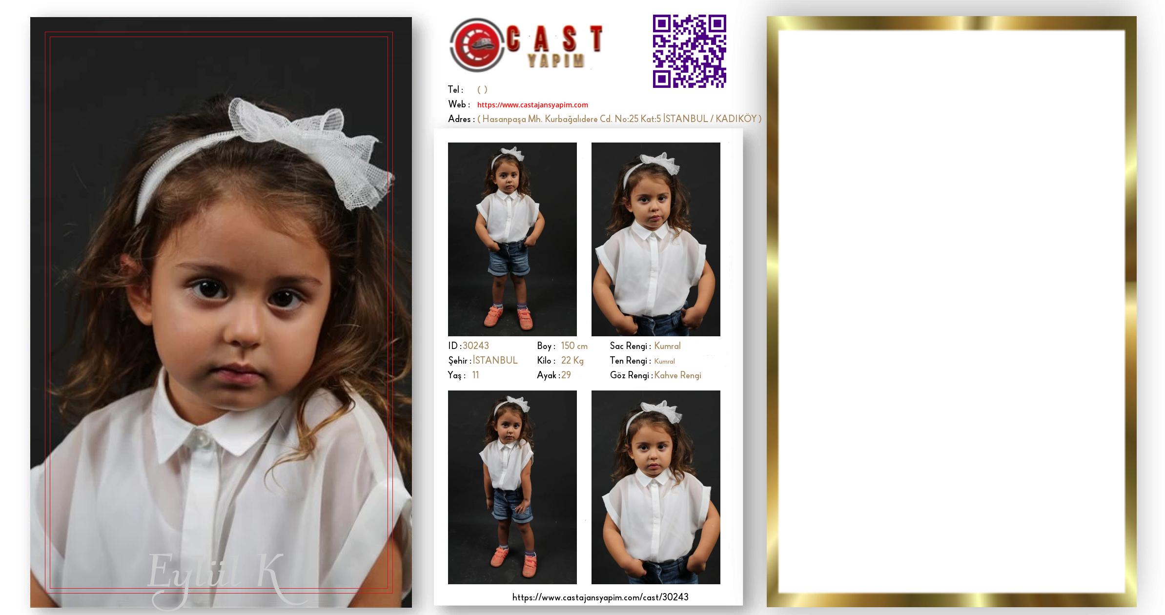 Merhaba, ben Eylül K. İSTANBUL şehrinde yaşıyorum ve 11 yaşındayım. Genel özelliklerim arasında boyum 150 cm, kilom 22 kg, saç rengim Kumral, göz rengim Kahve Rengi, ten rengim Kumral.