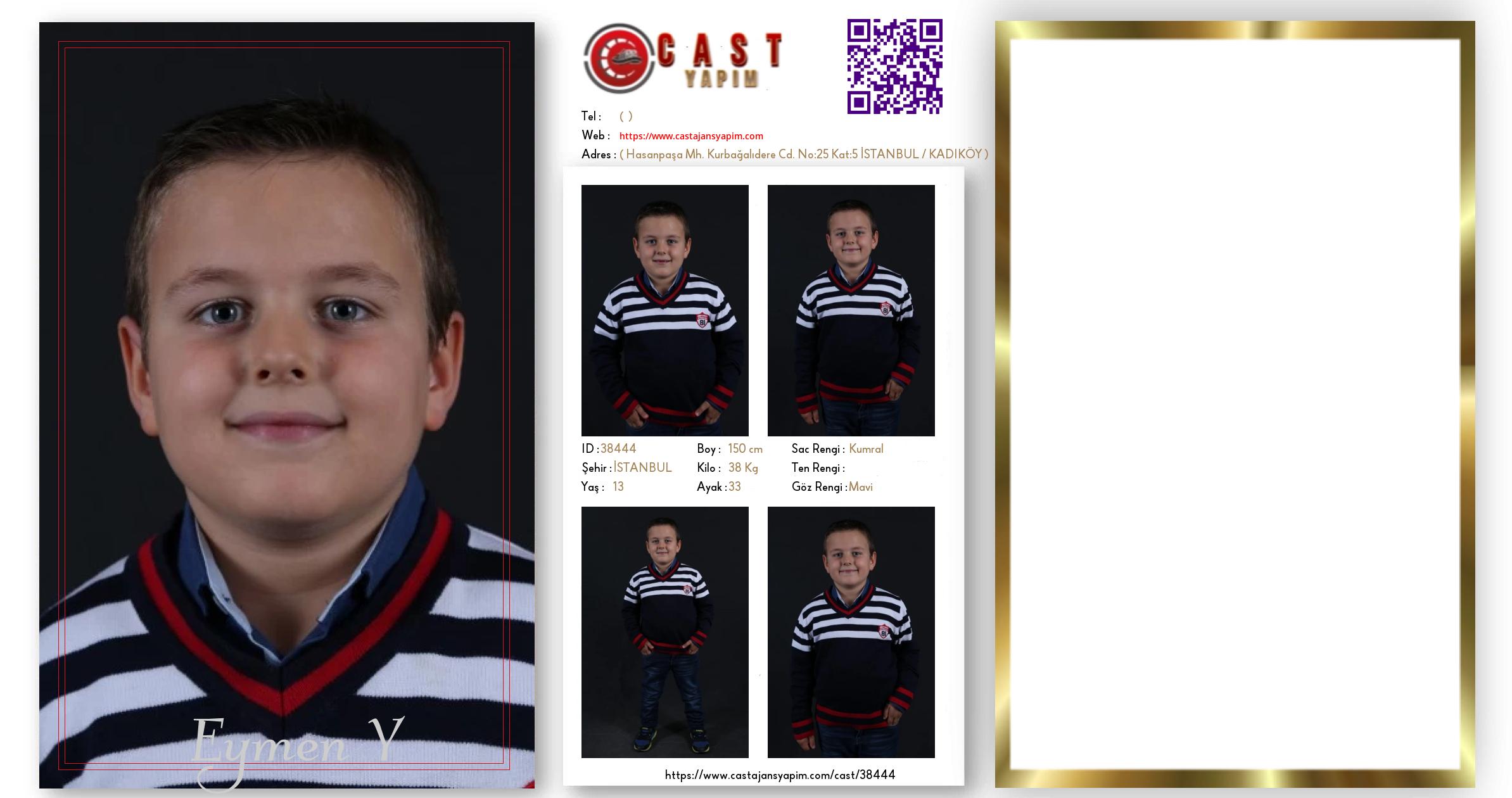 Merhaba, ben Eymen. İSTANBUL şehrinde yaşıyorum ve 13 yaşındayım. Genel özelliklerim arasında boyum 150 cm, kilom 38 kg, saç rengim Kumral, göz rengim Mavi.