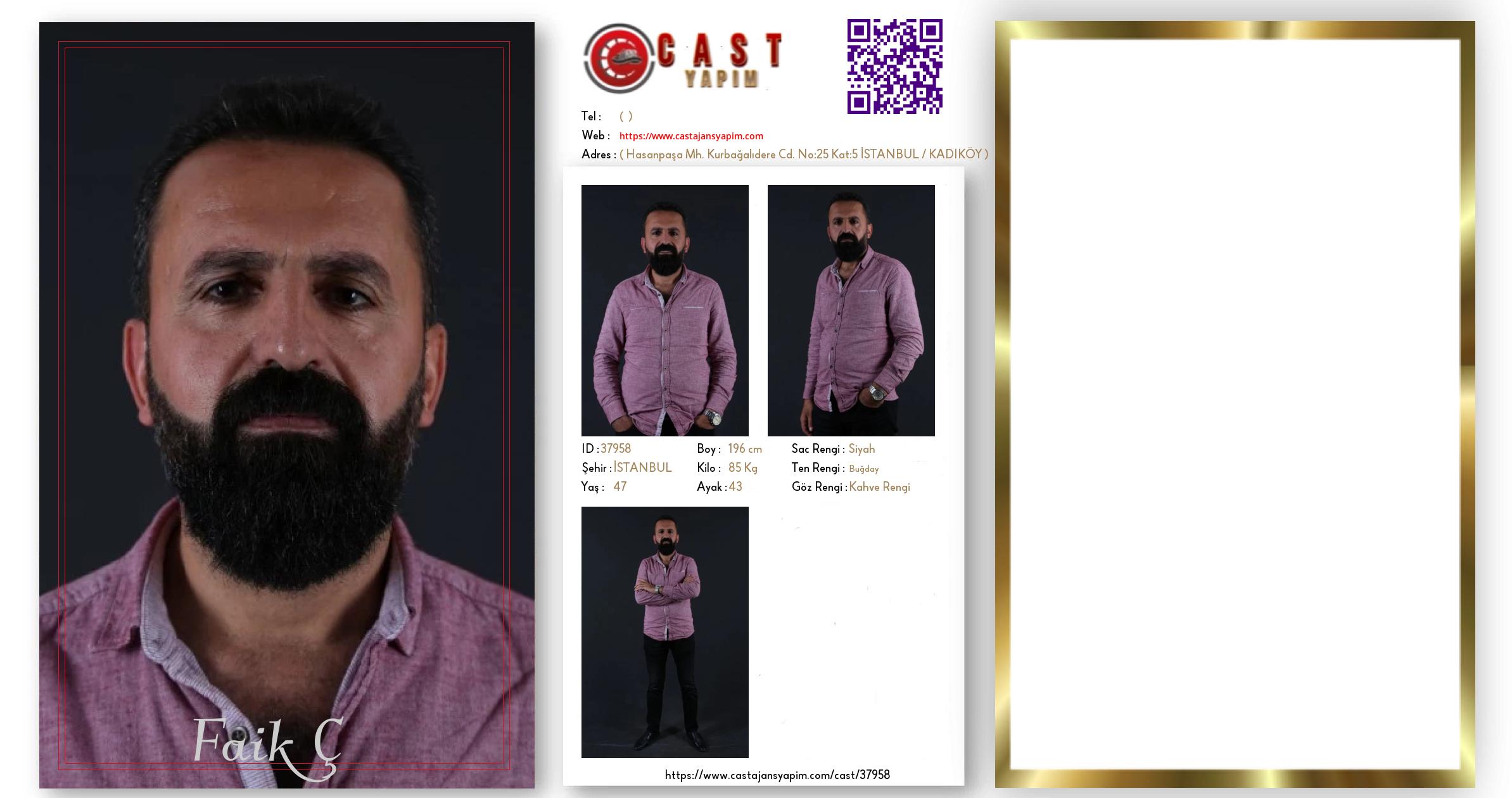 Merhaba, ben Faik Ç. İSTANBUL şehrinde yaşıyorum ve 47 yaşındayım. Genel özelliklerim arasında boyum 196 cm, kilom 85 kg, saç rengim Siyah, göz rengim Kahve Rengi, ten rengim Buğday.