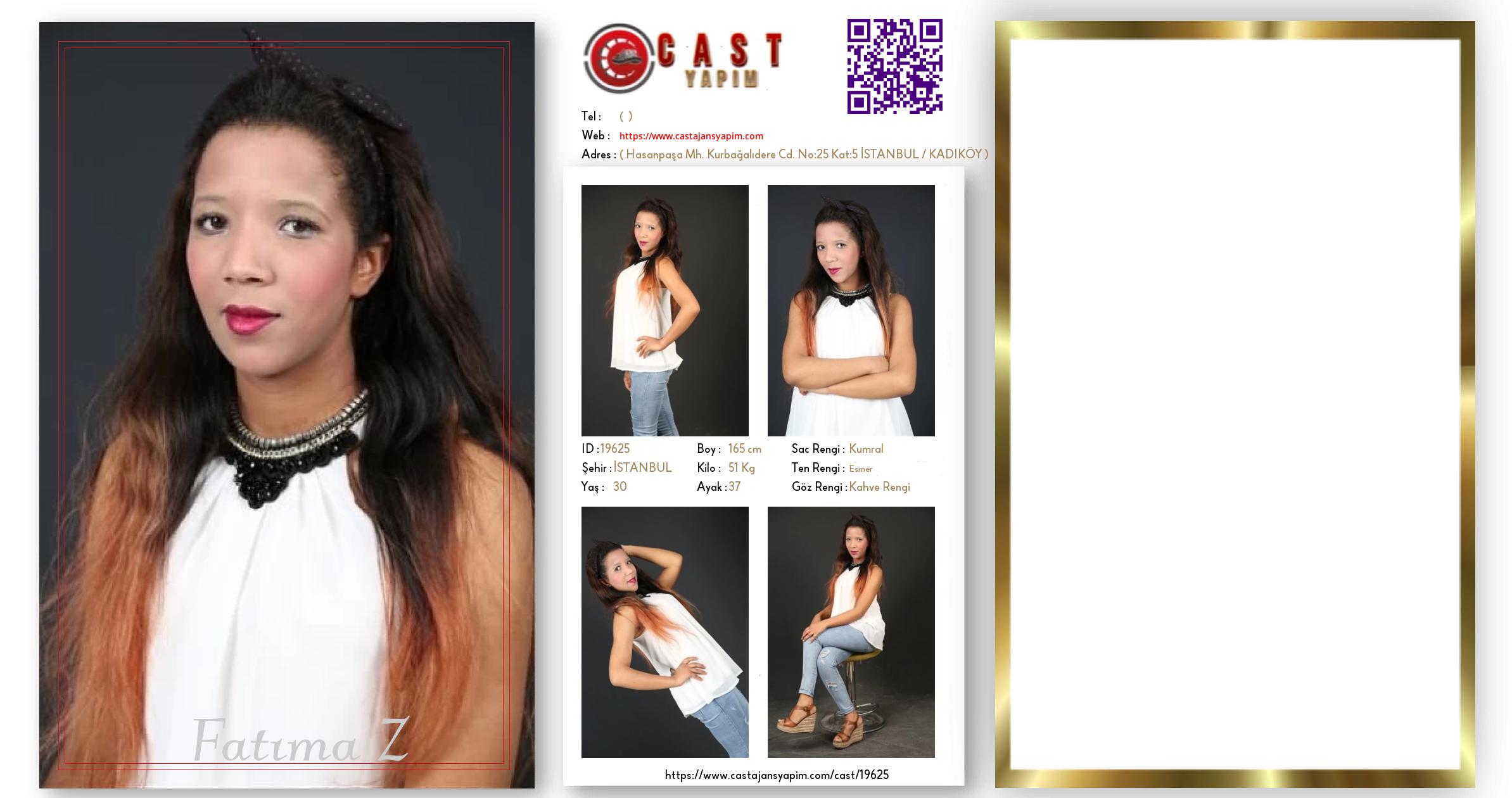 Merhaba, ben Fatıma. İSTANBUL şehrinde yaşıyorum ve 30 yaşındayım. Genel özelliklerim arasında boyum 165 cm, kilom 51 kg, saç rengim Kumral, göz rengim Kahve Rengi, ten rengim Esmer.