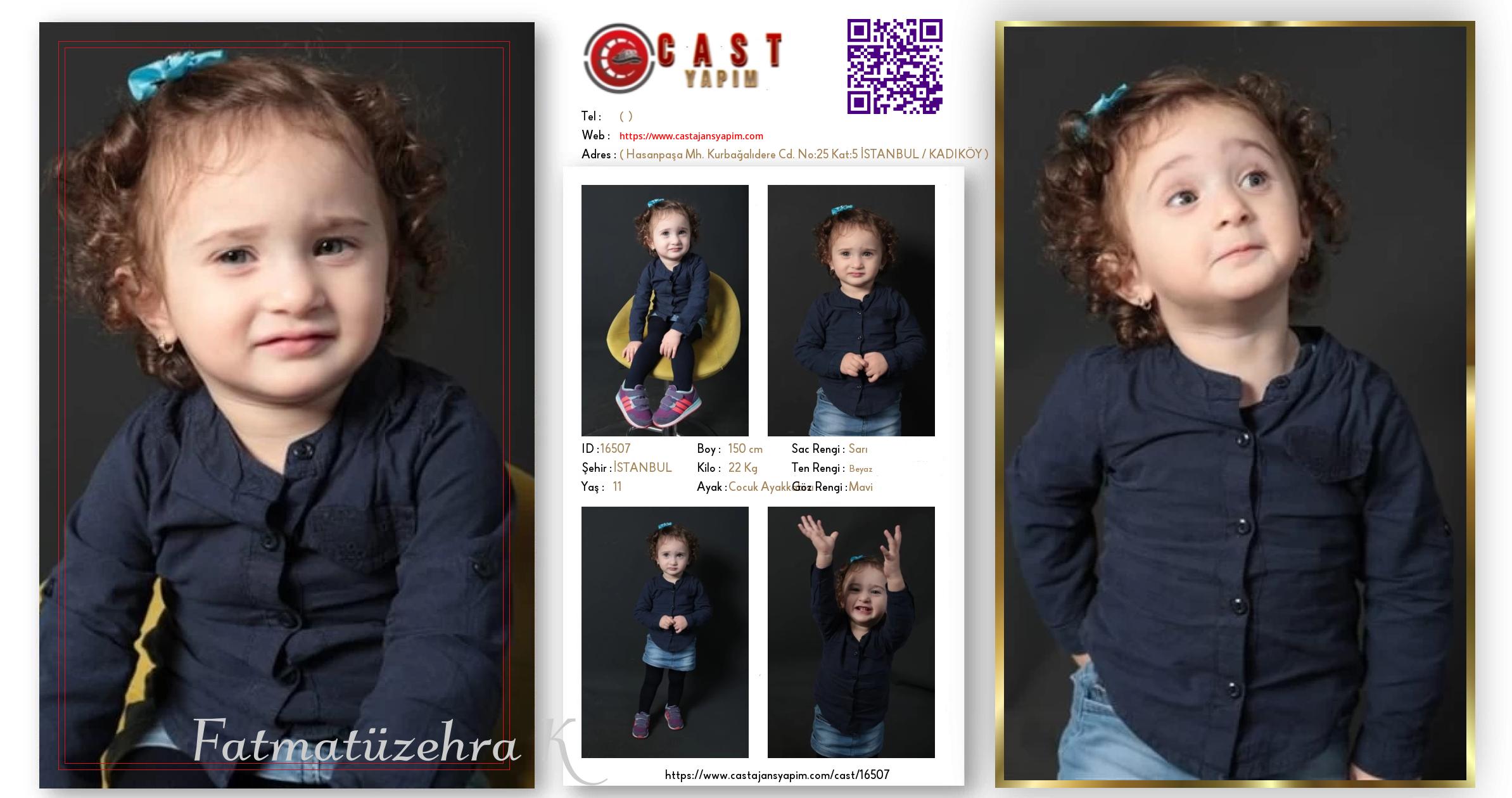 Merhaba, ben Fatmatüzehra. İSTANBUL şehrinde yaşıyorum ve 11 yaşındayım. Genel özelliklerim arasında boyum 150 cm, kilom 22 kg, saç rengim Sarı, göz rengim Mavi, ten rengim Beyaz.