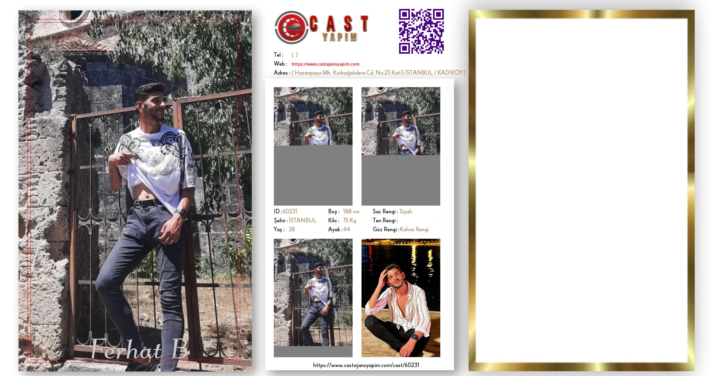 Merhaba, ben Ferhat B. İSTANBUL şehrinde yaşıyorum ve 28 yaşındayım. Genel özelliklerim arasında boyum 188 cm, kilom 75 kg, saç rengim Siyah, göz rengim Kahve Rengi.