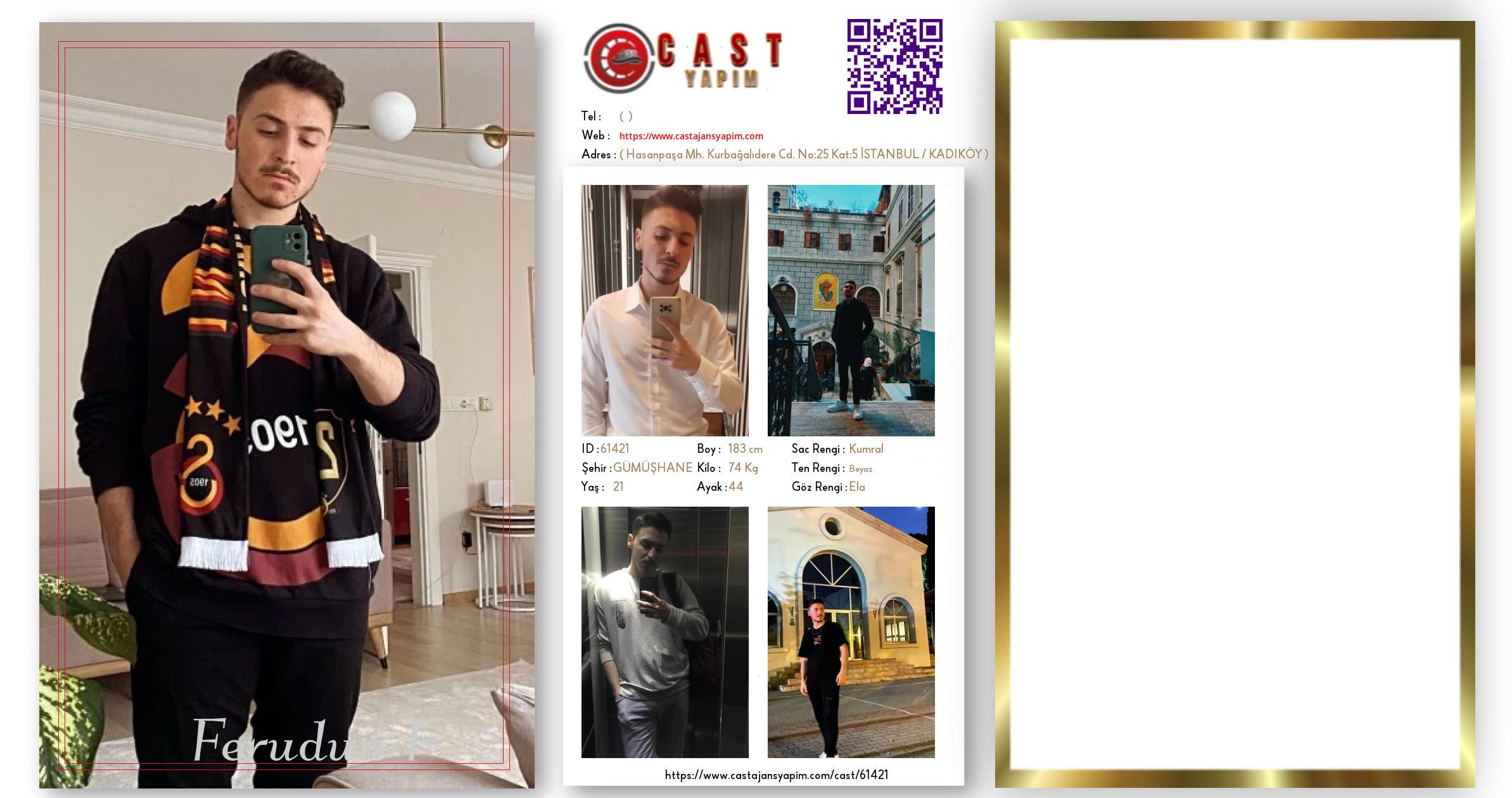 Merhaba, ben Ferudun Said. GÜMÜŞHANE şehrinde yaşıyorum ve 21 yaşındayım. Genel özelliklerim arasında boyum 183 cm, kilom 74 kg, saç rengim Kumral, göz rengim Ela, ten rengim Beyaz.