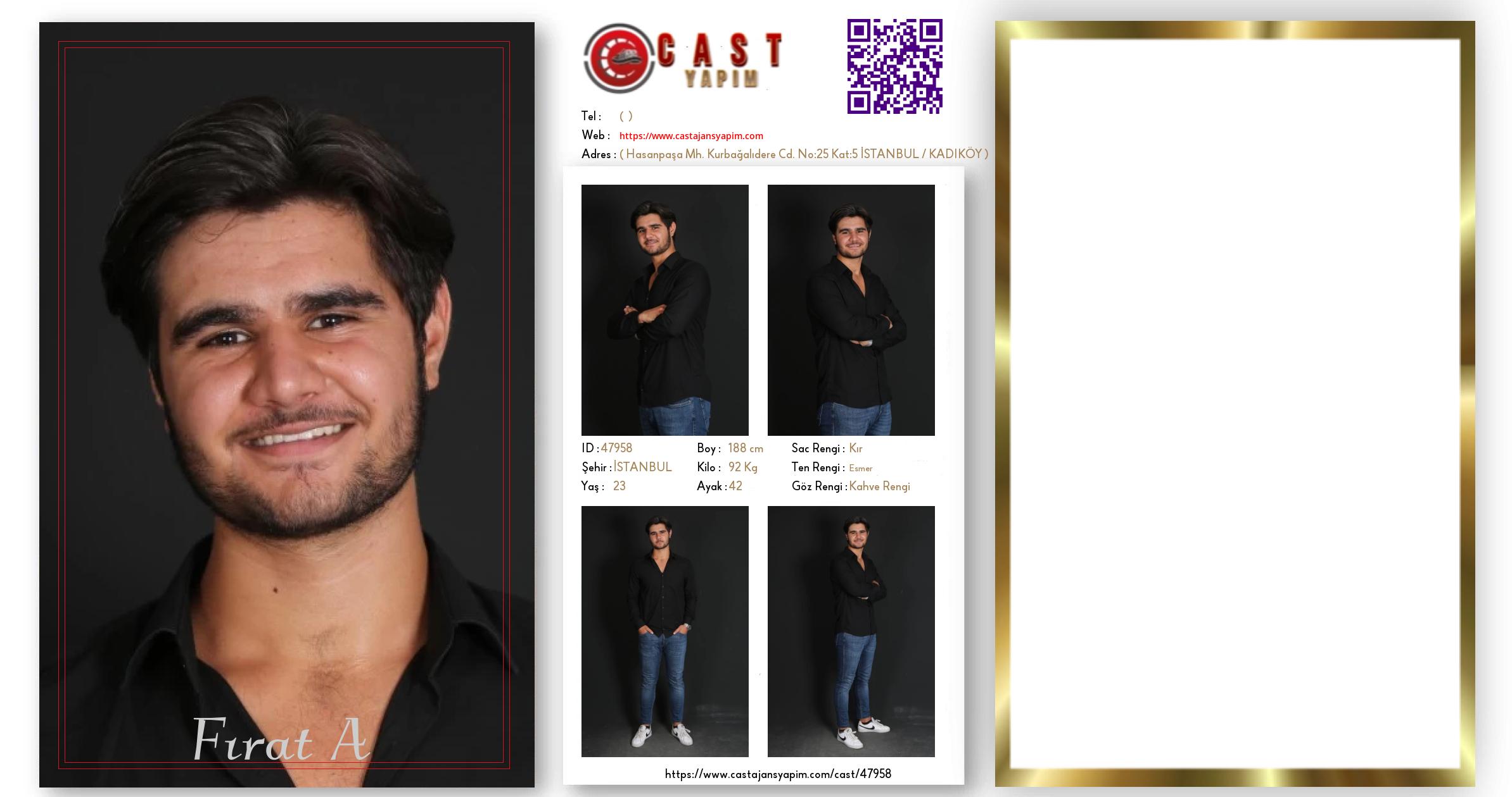 Merhaba, ben Fırat. İSTANBUL şehrinde yaşıyorum ve 23 yaşındayım. Genel özelliklerim arasında boyum 188 cm, kilom 92 kg, saç rengim Kır, göz rengim Kahve Rengi, ten rengim Esmer.