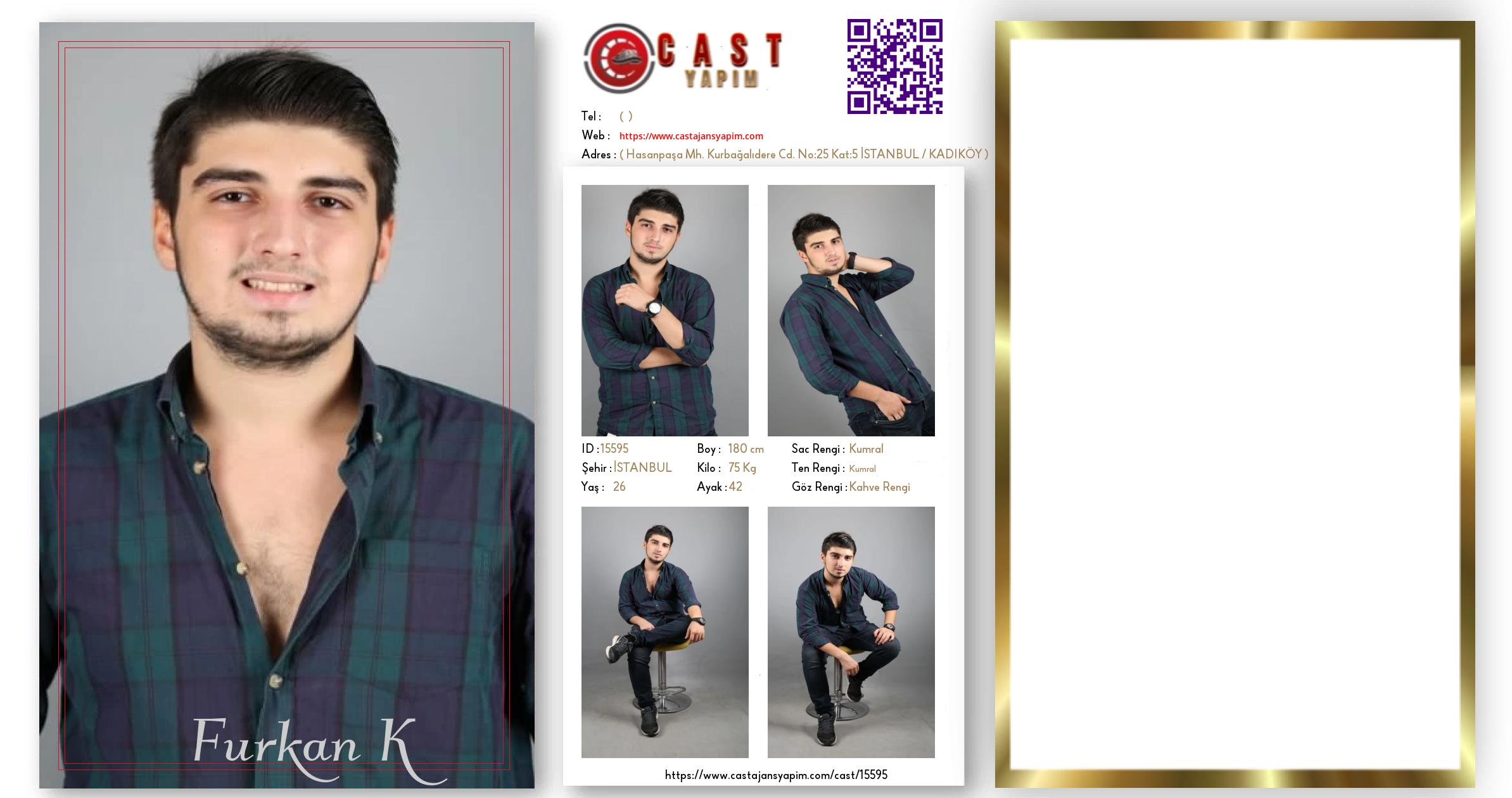Merhaba, ben Furkan Sefa. İSTANBUL şehrinde yaşıyorum ve 26 yaşındayım. Genel özelliklerim arasında boyum 180 cm, kilom 75 kg, saç rengim Kumral, göz rengim Kahve Rengi, ten rengim Kumral.