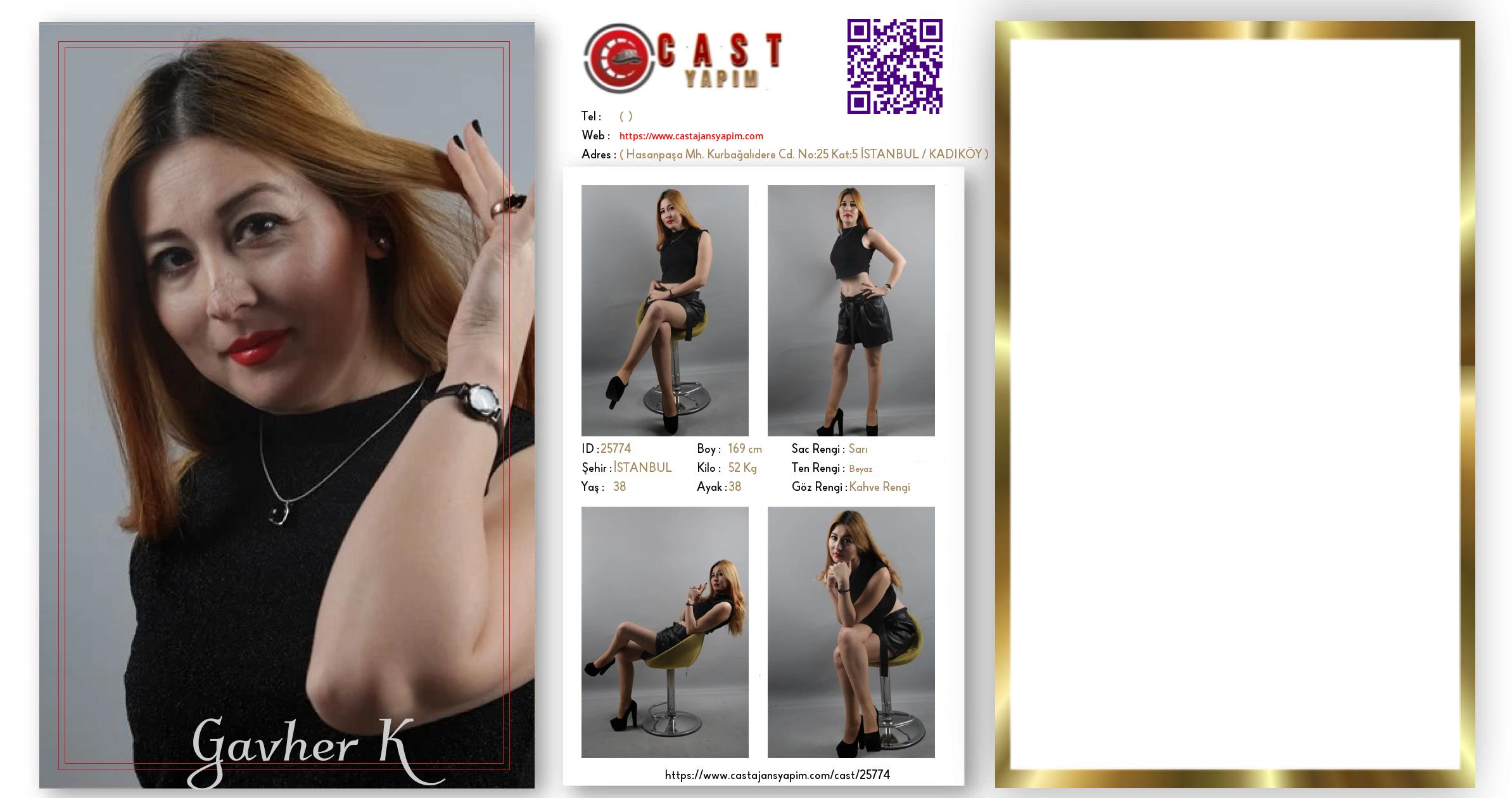 Merhaba, ben Gavher . İSTANBUL şehrinde yaşıyorum ve 38 yaşındayım. Genel özelliklerim arasında boyum 169 cm, kilom 52 kg, saç rengim Sarı, göz rengim Kahve Rengi, ten rengim Beyaz.