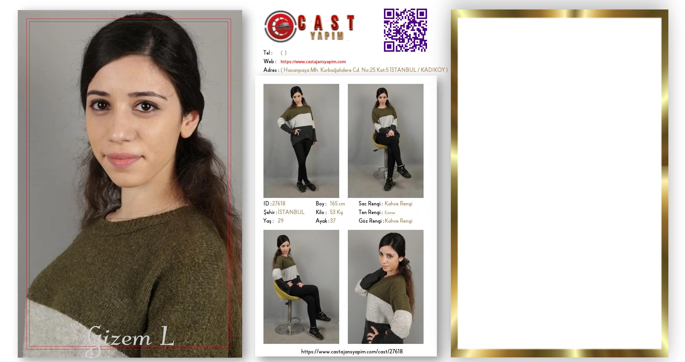 Merhaba, ben Gizem. İSTANBUL şehrinde yaşıyorum ve 29 yaşındayım. Genel özelliklerim arasında boyum 165 cm, kilom 53 kg, saç rengim Kahve Rengi, göz rengim Kahve Rengi, ten rengim Esmer.