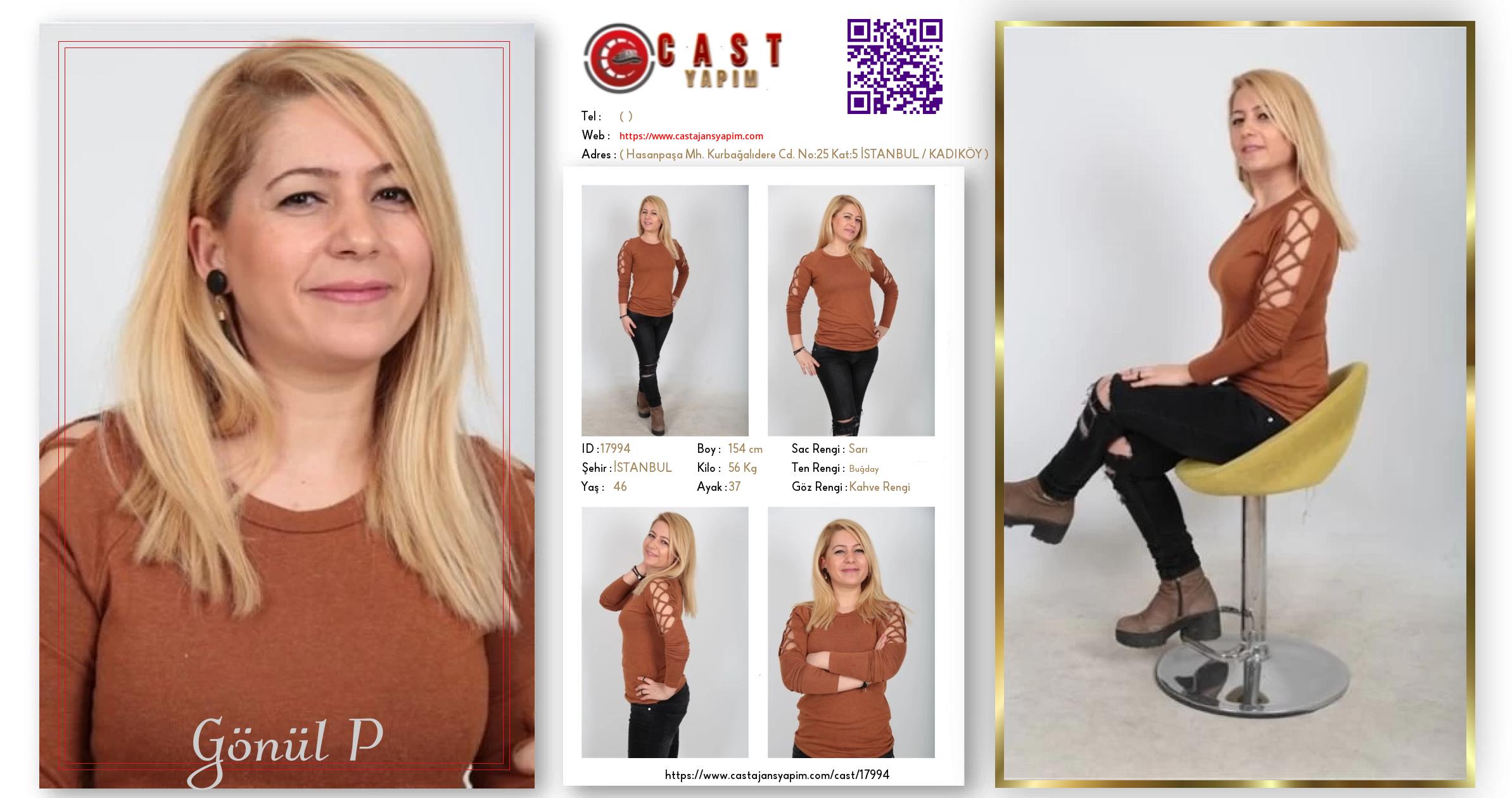 Merhaba, ben Gönül. İSTANBUL şehrinde yaşıyorum ve 46 yaşındayım. Genel özelliklerim arasında boyum 154 cm, kilom 56 kg, saç rengim Sarı, göz rengim Kahve Rengi, ten rengim Buğday.