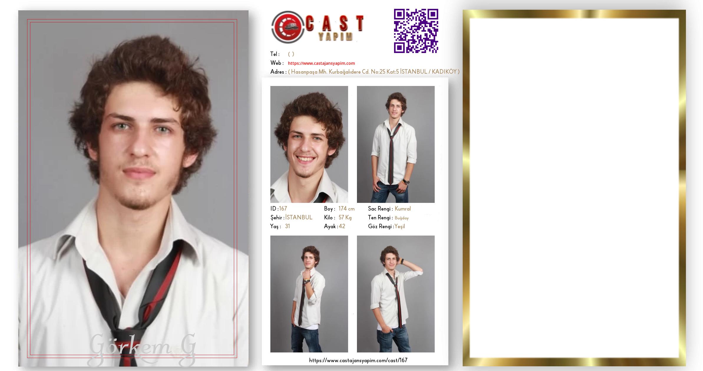 Merhaba, ben Görkem G. İSTANBUL şehrinde yaşıyorum ve 31 yaşındayım. Genel özelliklerim arasında boyum 174 cm, kilom 57 kg, saç rengim Kumral, göz rengim Yeşil, ten rengim Buğday.