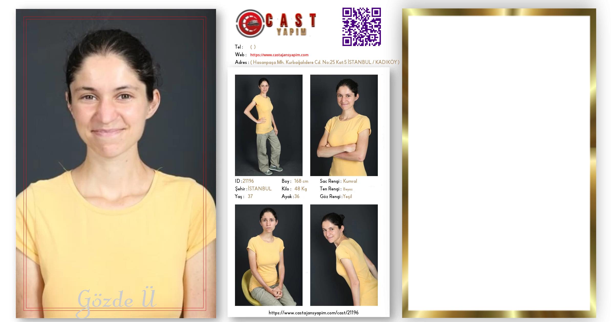 Merhaba, ben Gözde Ü. İSTANBUL şehrinde yaşıyorum ve 37 yaşındayım. Genel özelliklerim arasında boyum 168 cm, kilom 48 kg, saç rengim Kumral, göz rengim Yeşil, ten rengim Beyaz.