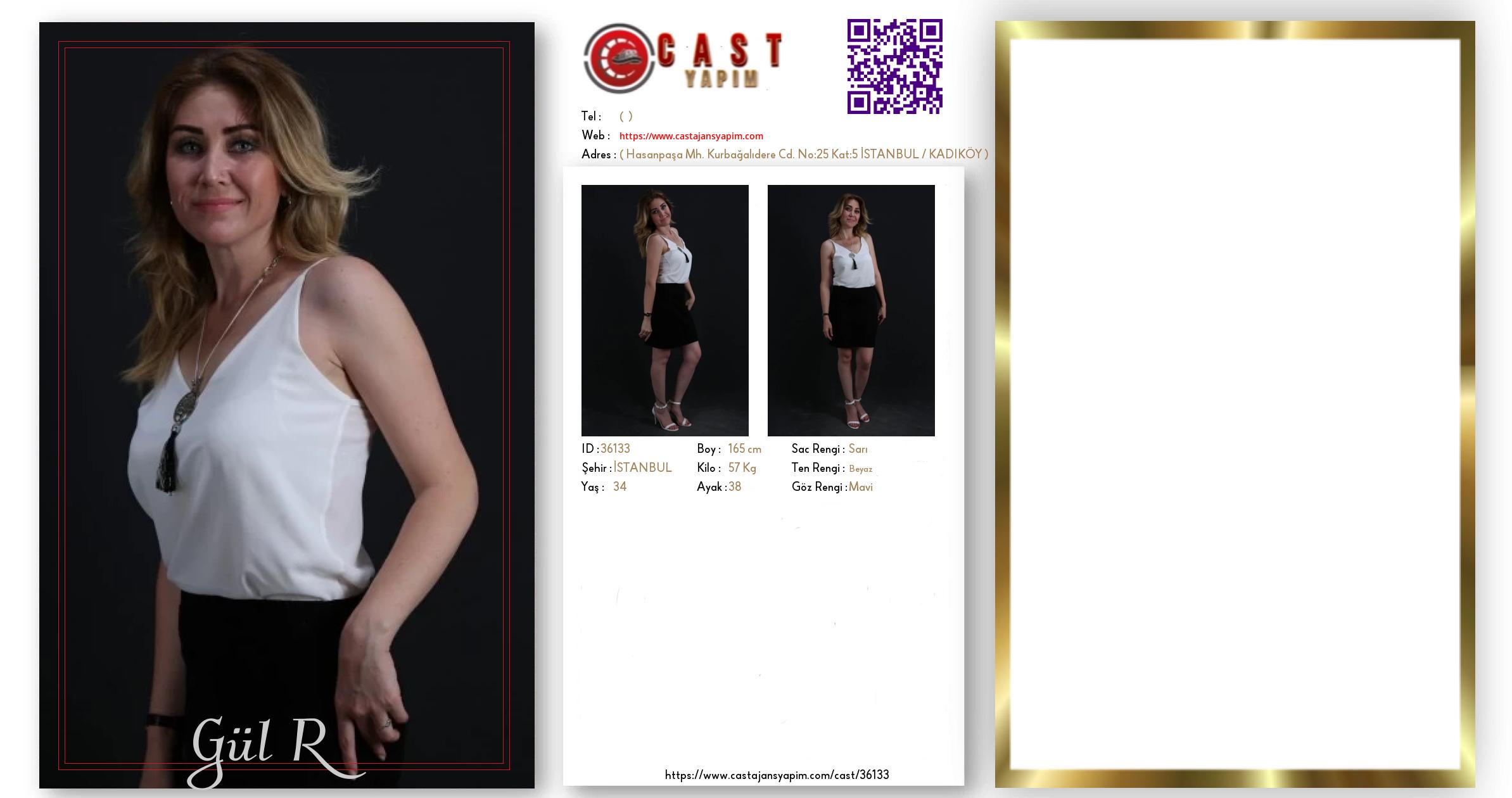 Merhaba, ben Gül R. İSTANBUL şehrinde yaşıyorum ve 34 yaşındayım. Genel özelliklerim arasında boyum 165 cm, kilom 57 kg, saç rengim Sarı, göz rengim Mavi, ten rengim Beyaz.