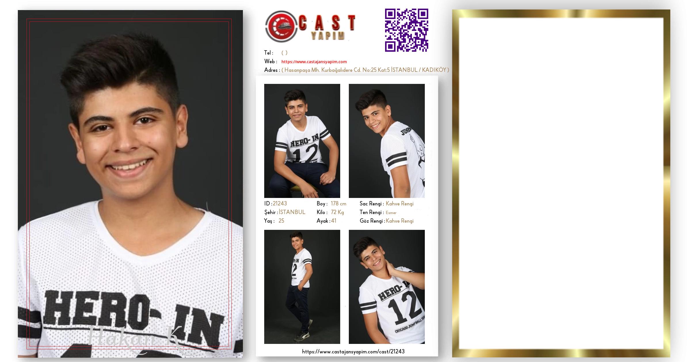 Merhaba, ben Hakan K. İSTANBUL şehrinde yaşıyorum ve 25 yaşındayım. Genel özelliklerim arasında boyum 178 cm, kilom 72 kg, saç rengim Kahve Rengi, göz rengim Kahve Rengi, ten rengim Esmer.