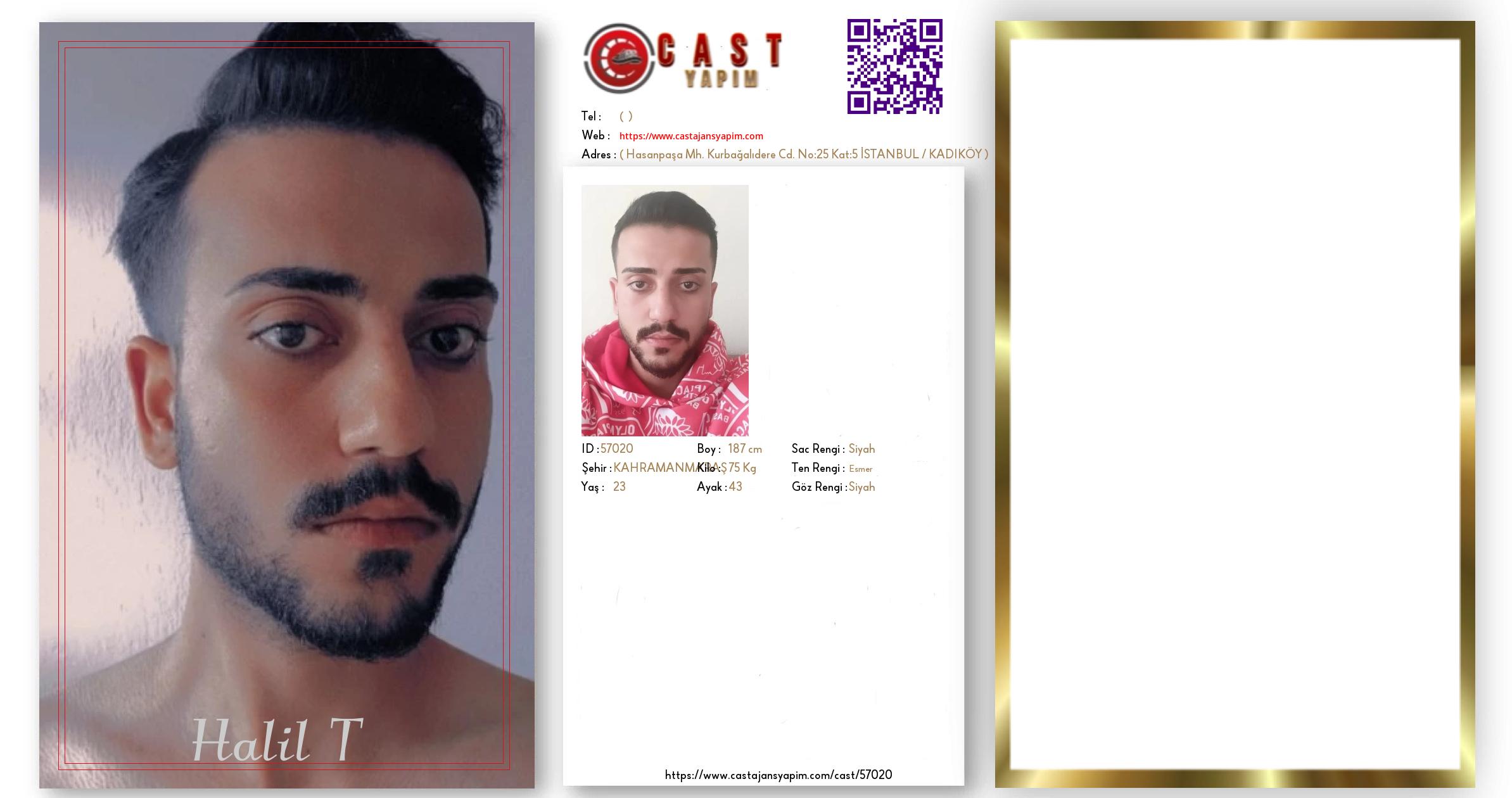 Merhaba, ben Halil T. KAHRAMANMARAŞ şehrinde yaşıyorum ve 23 yaşındayım. Genel özelliklerim arasında boyum 187 cm, kilom 75 kg, saç rengim Siyah, göz rengim Siyah, ten rengim Esmer.
