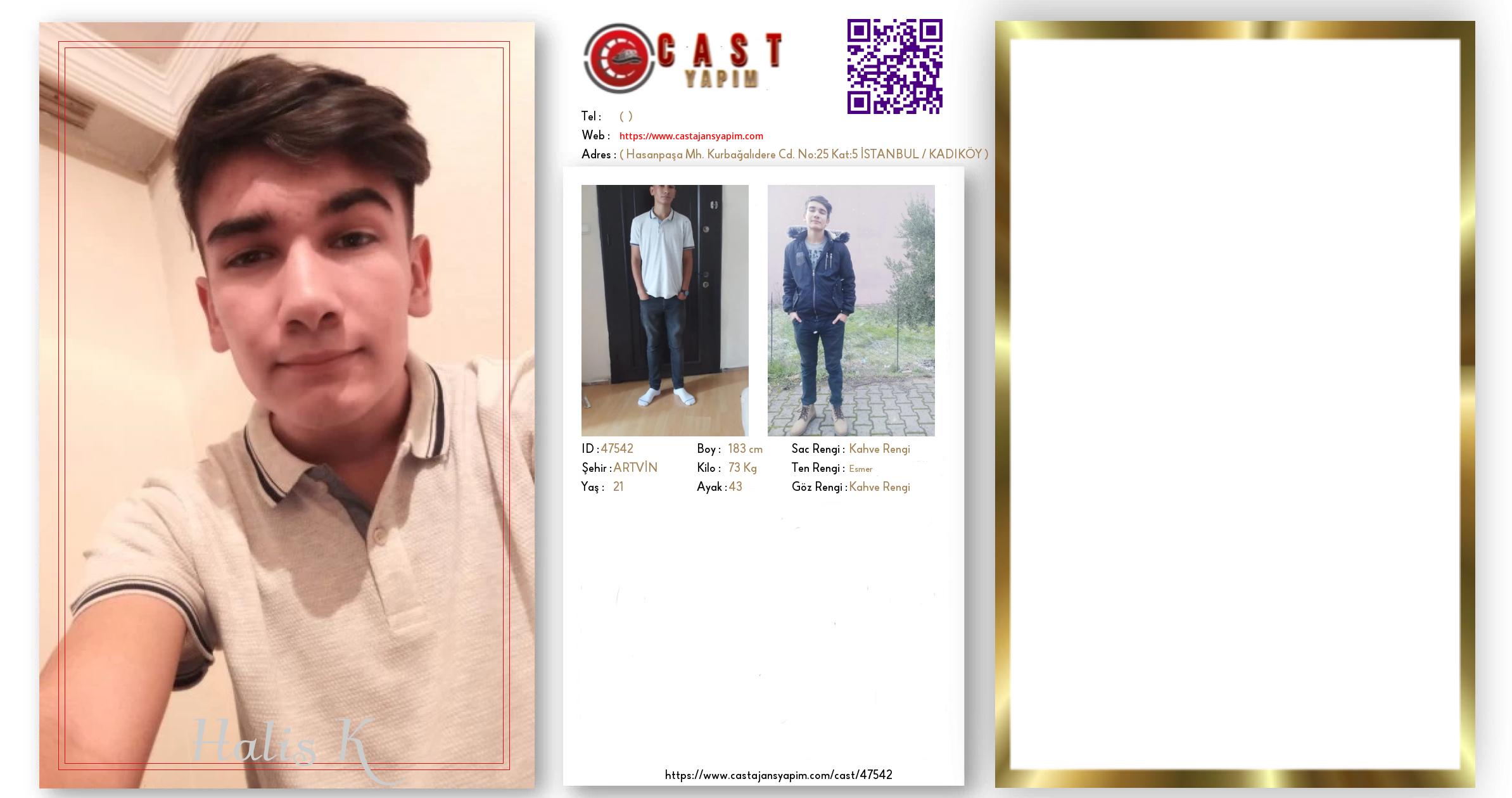 Merhaba, ben Halis K. ARTVİN şehrinde yaşıyorum ve 21 yaşındayım. Genel özelliklerim arasında boyum 183 cm, kilom 73 kg, saç rengim Kahve Rengi, göz rengim Kahve Rengi, ten rengim Esmer.