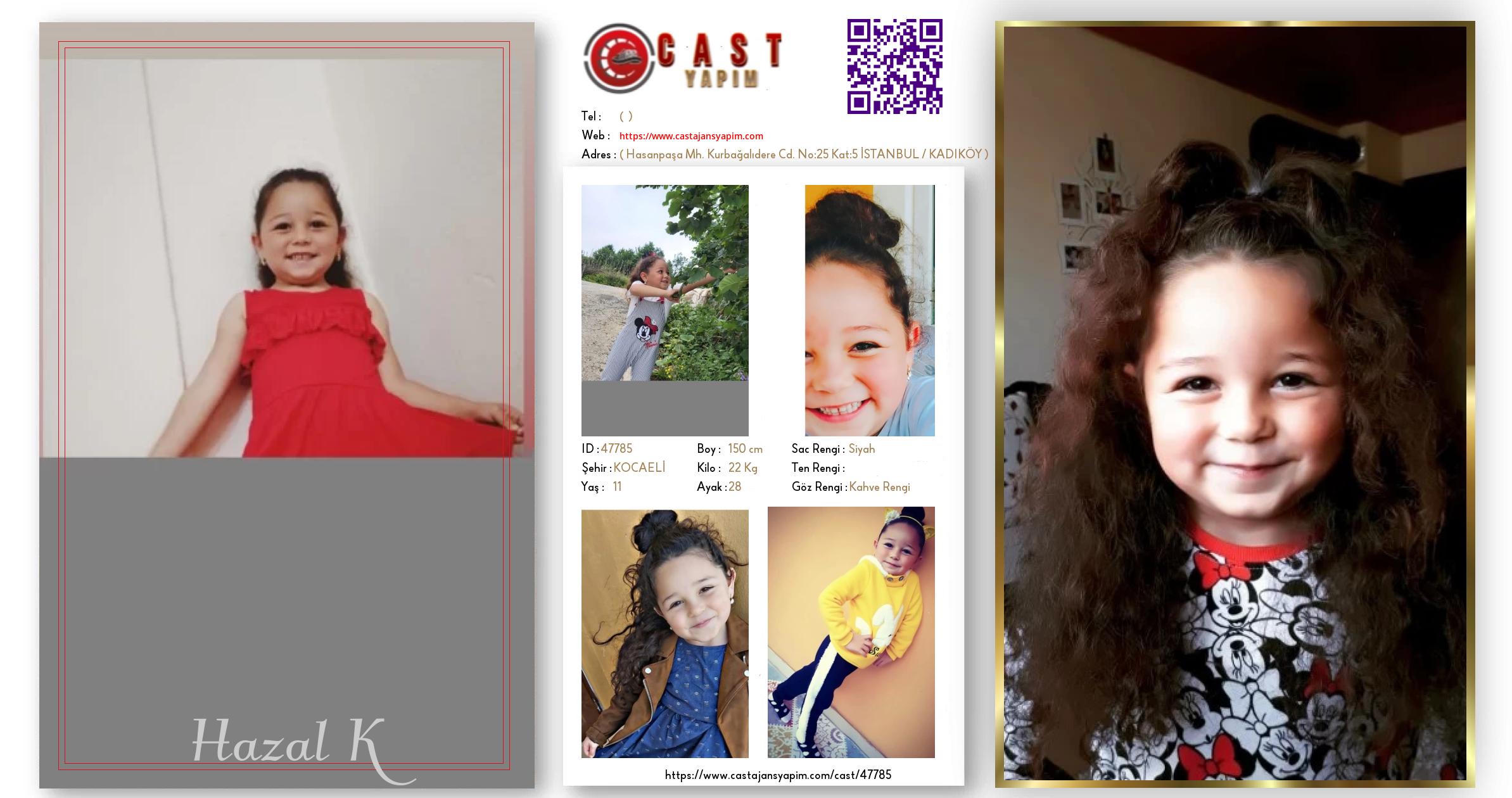 Merhaba, ben Hazal Ecrin. KOCAELİ şehrinde yaşıyorum ve 11 yaşındayım. Genel özelliklerim arasında boyum 150 cm, kilom 22 kg, saç rengim Siyah, göz rengim Kahve Rengi.