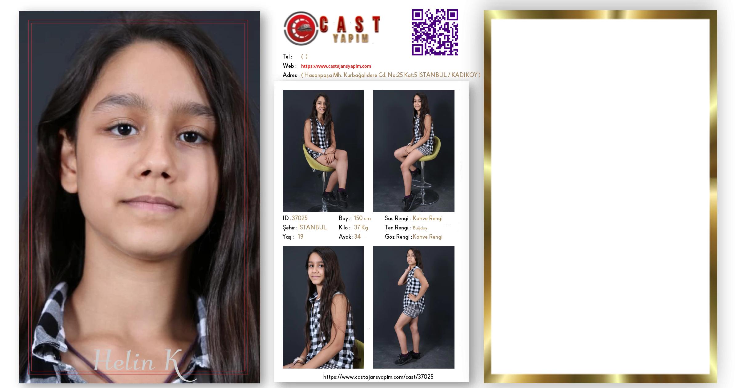 Merhaba, ben Helin K. İSTANBUL şehrinde yaşıyorum ve 19 yaşındayım. Genel özelliklerim arasında boyum 150 cm, kilom 37 kg, saç rengim Kahve Rengi, göz rengim Kahve Rengi, ten rengim Buğday.