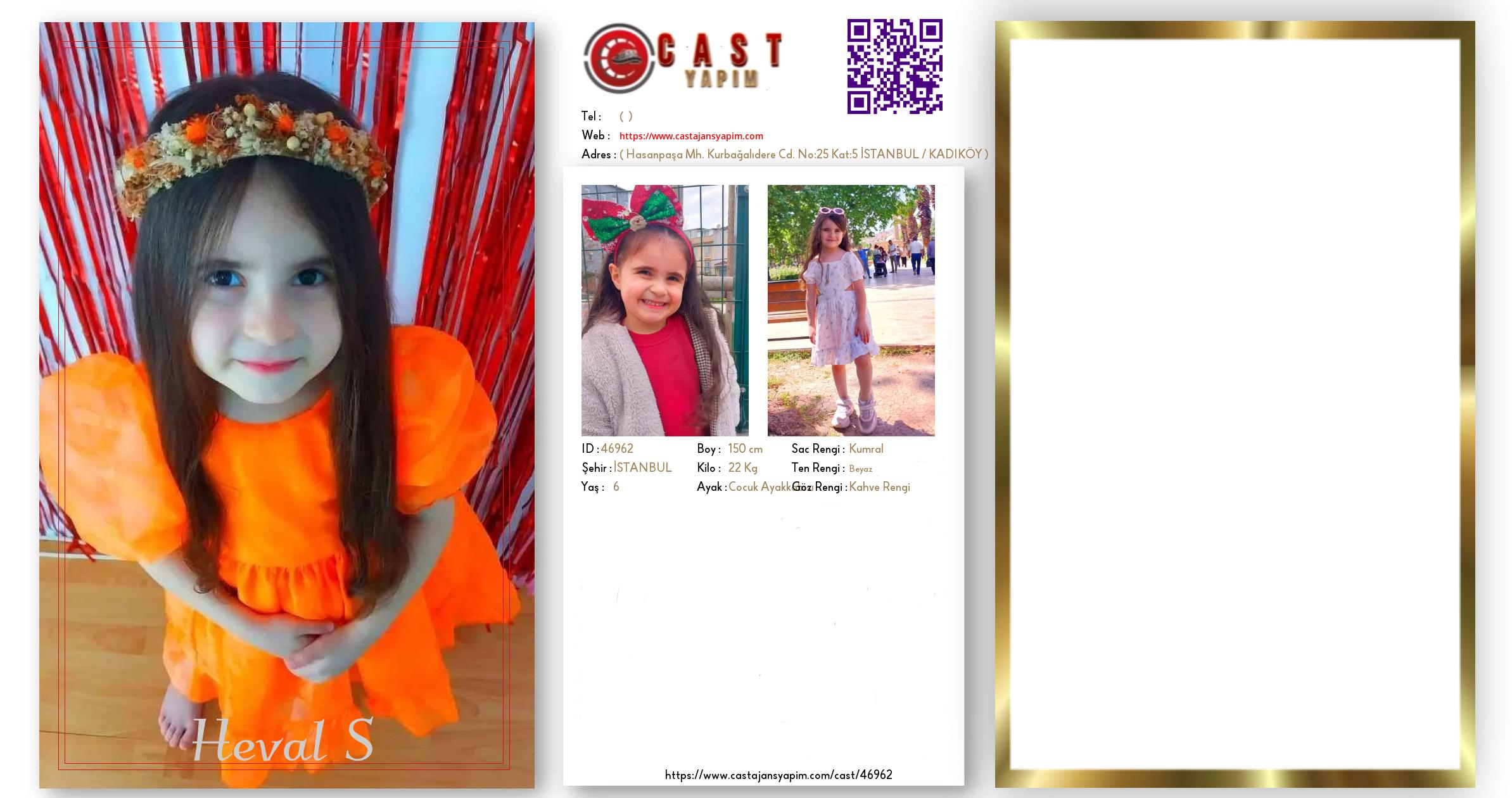 Merhaba, ben Heval S. İSTANBUL şehrinde yaşıyorum ve 6 yaşındayım. Genel özelliklerim arasında boyum 150 cm, kilom 22 kg, saç rengim Kumral, göz rengim Kahve Rengi, ten rengim Beyaz.