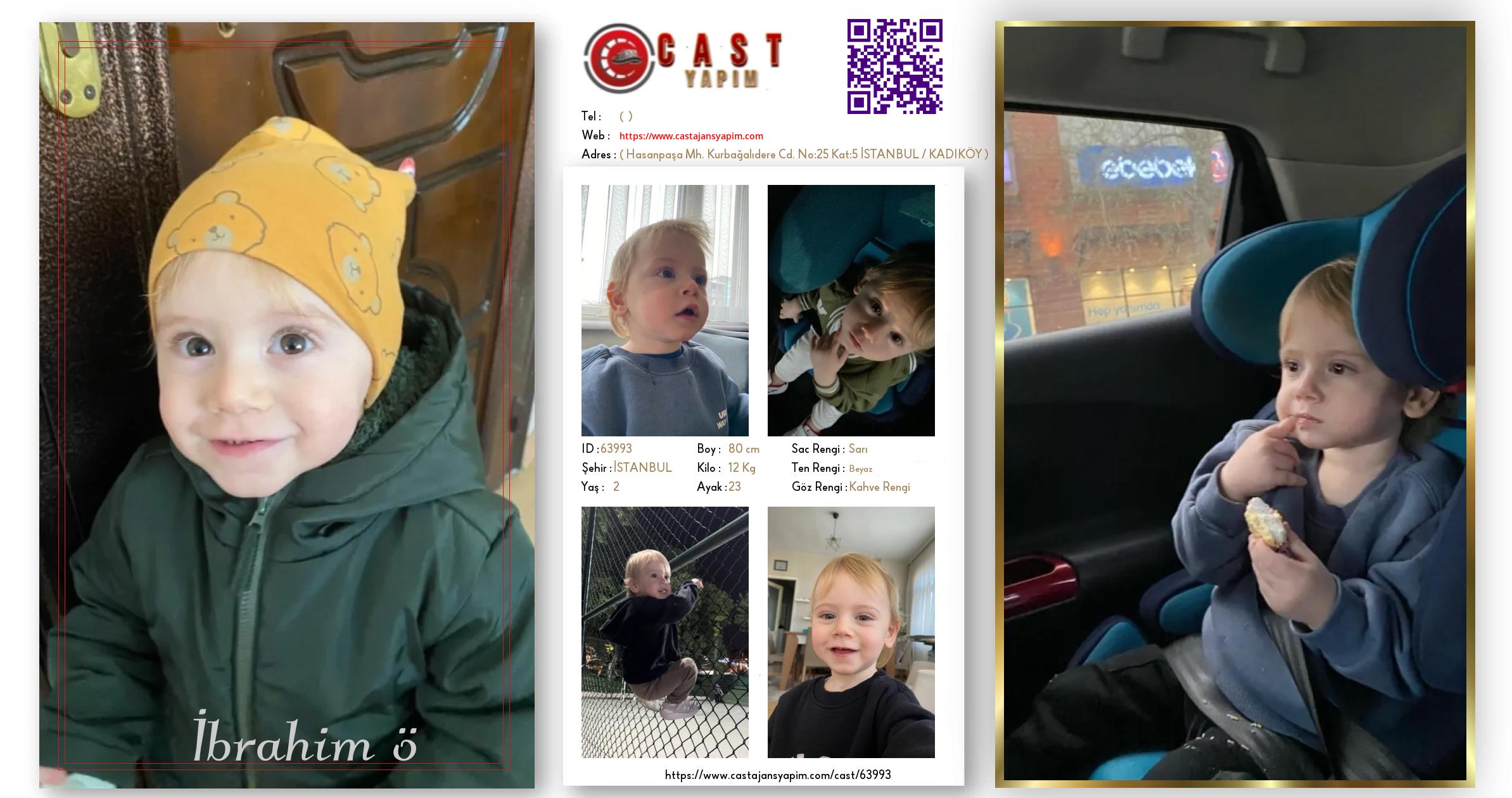 Merhaba, ben İbrahim ö. İSTANBUL şehrinde yaşıyorum ve 2 yaşındayım. Genel özelliklerim arasında boyum 80 cm, kilom 12 kg, saç rengim Sarı, göz rengim Kahve Rengi, ten rengim Beyaz.
