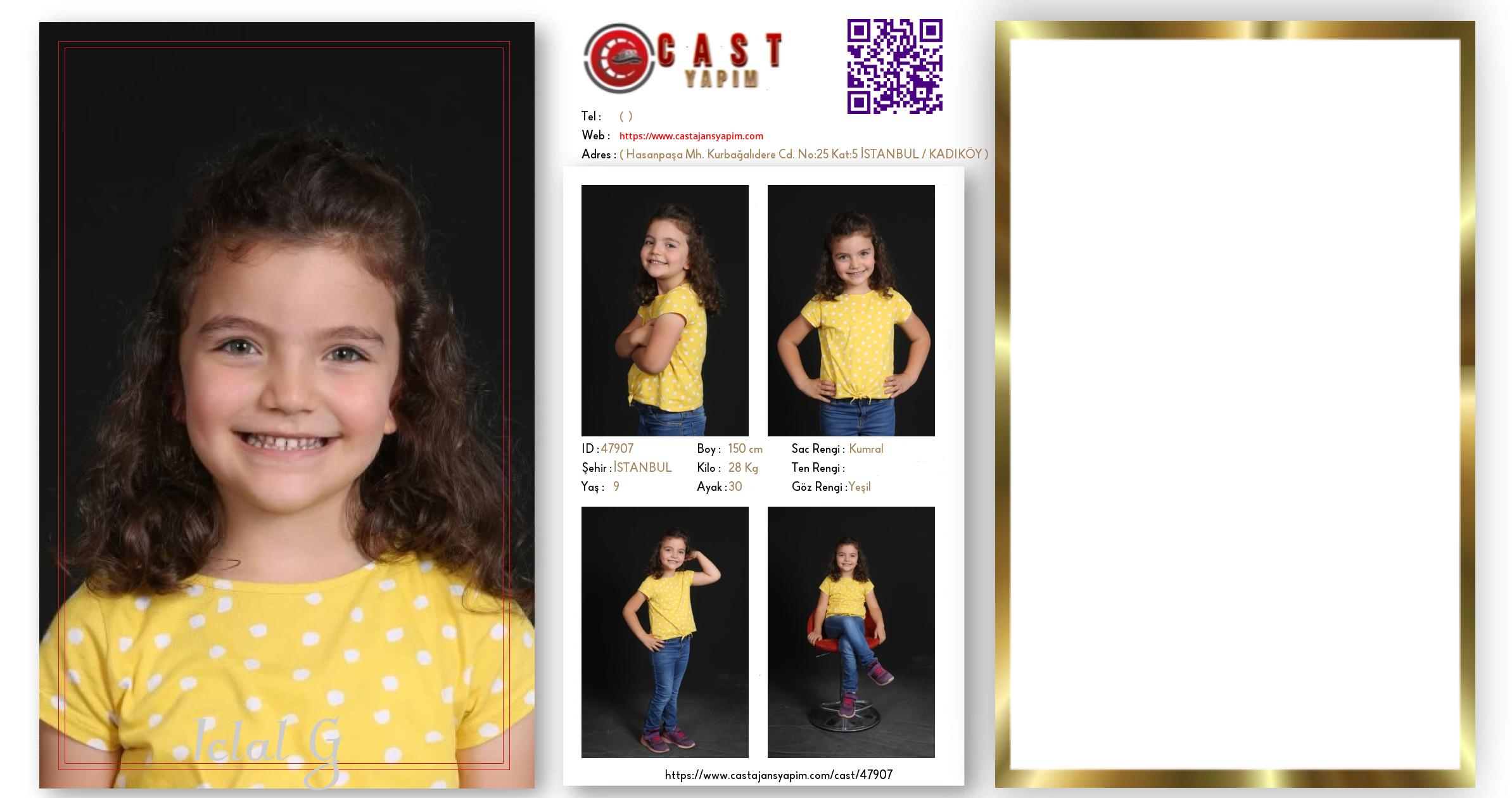 Merhaba, ben Iclal. İSTANBUL şehrinde yaşıyorum ve 9 yaşındayım. Genel özelliklerim arasında boyum 150 cm, kilom 28 kg, saç rengim Kumral, göz rengim Yeşil.