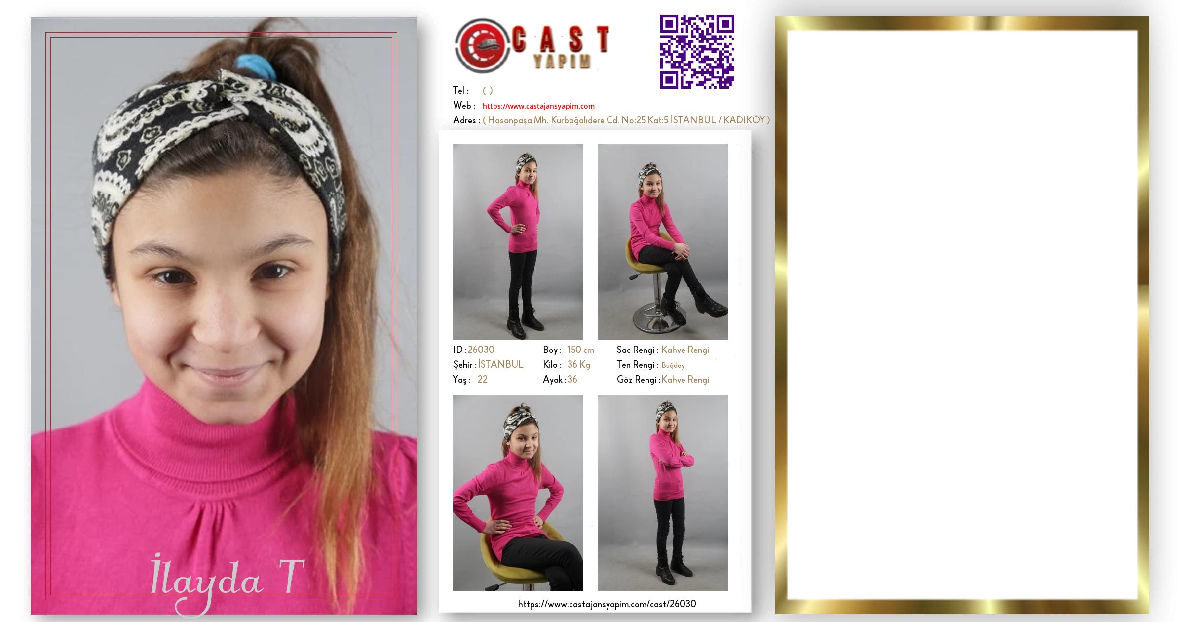 Merhaba, ben İlayda T. İSTANBUL şehrinde yaşıyorum ve 22 yaşındayım. Genel özelliklerim arasında boyum 150 cm, kilom 36 kg, saç rengim Kahve Rengi, göz rengim Kahve Rengi, ten rengim Buğday.