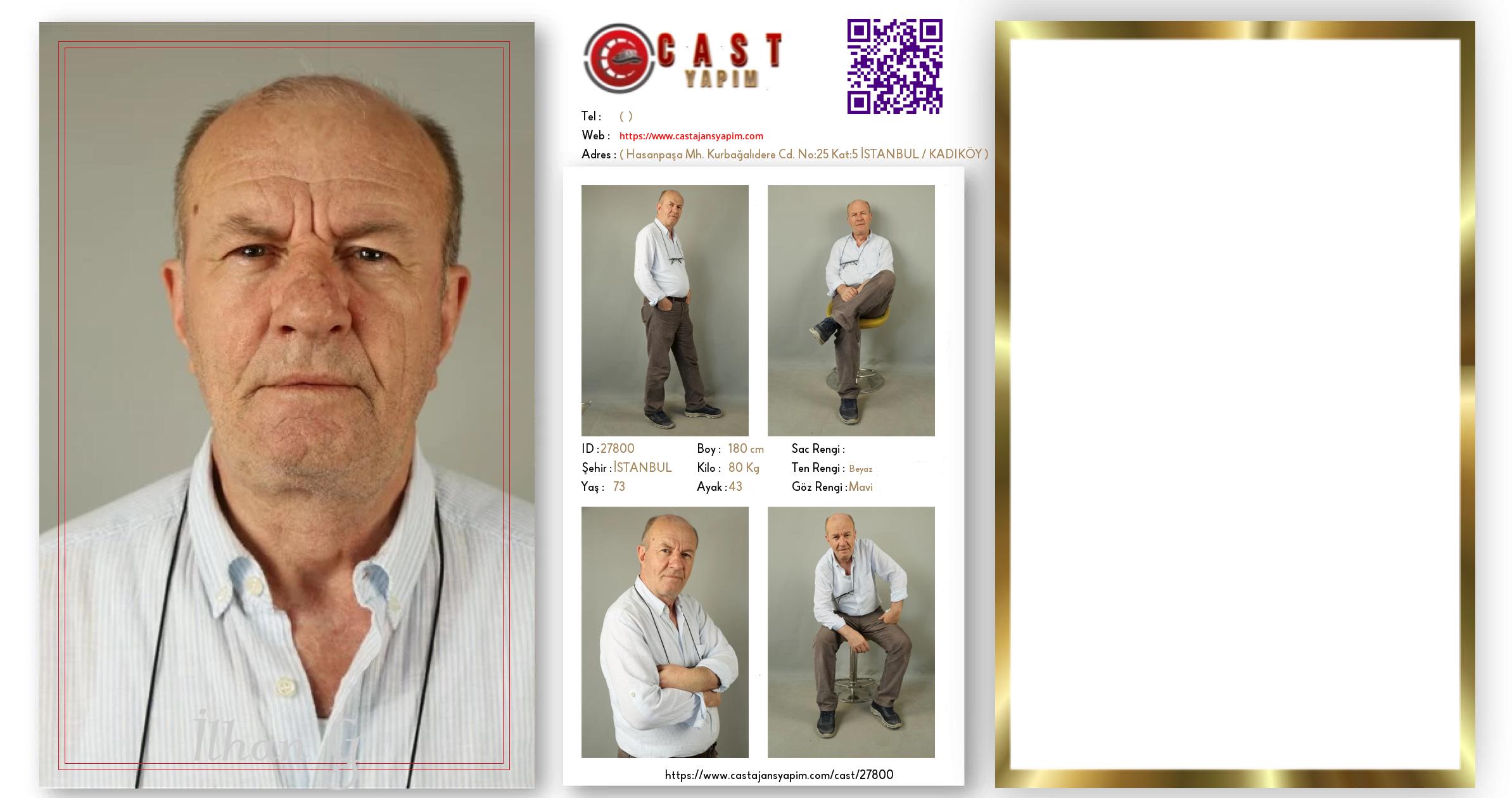 Merhaba, ben İlhan. İSTANBUL şehrinde yaşıyorum ve 73 yaşındayım. Genel özelliklerim arasında boyum 180 cm, kilom 80 kg, göz rengim Mavi, ten rengim Beyaz.