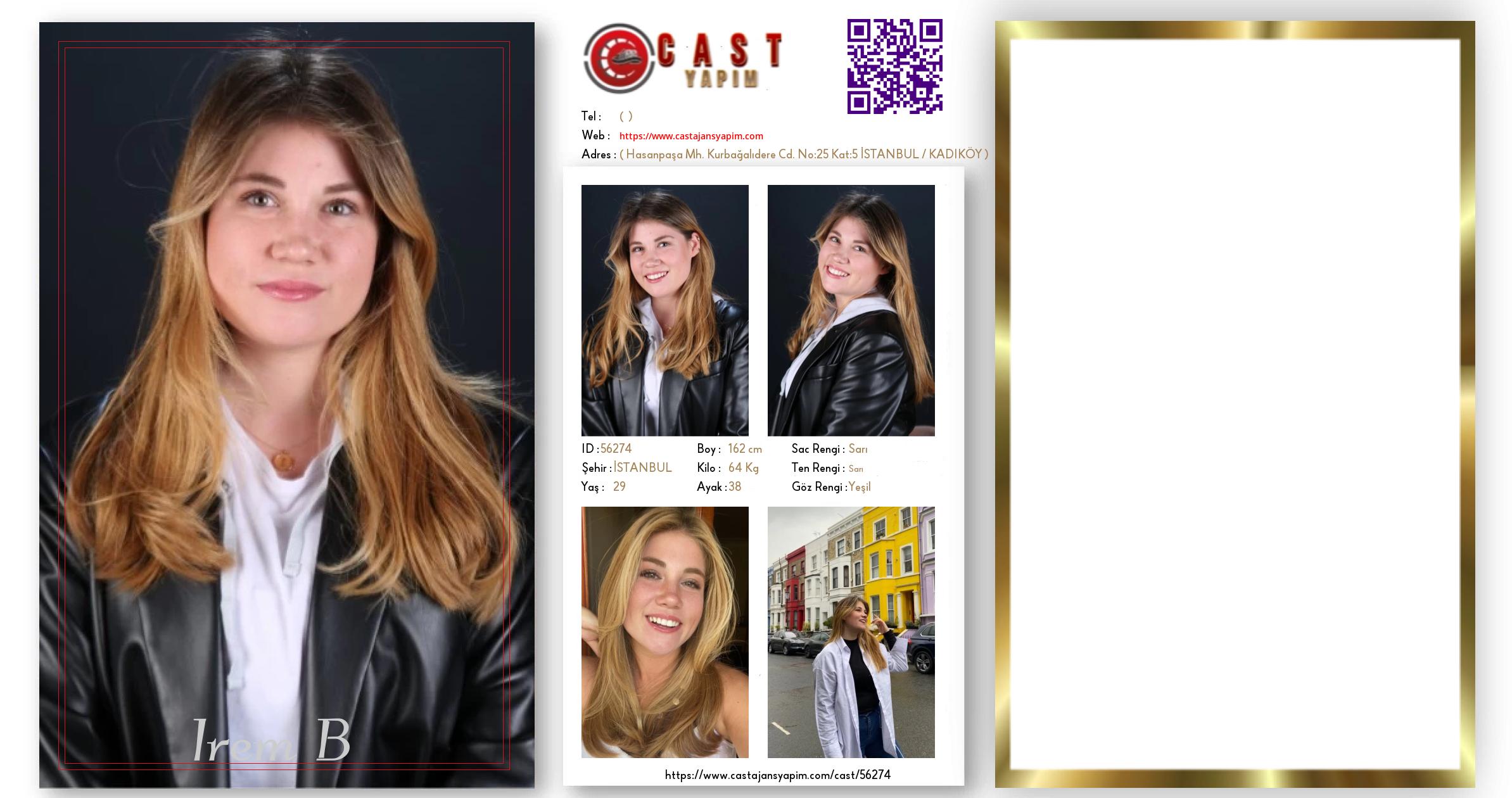 Merhaba, ben Irem B. İSTANBUL şehrinde yaşıyorum ve 29 yaşındayım. Genel özelliklerim arasında boyum 162 cm, kilom 64 kg, saç rengim Sarı, göz rengim Yeşil, ten rengim Sarı.