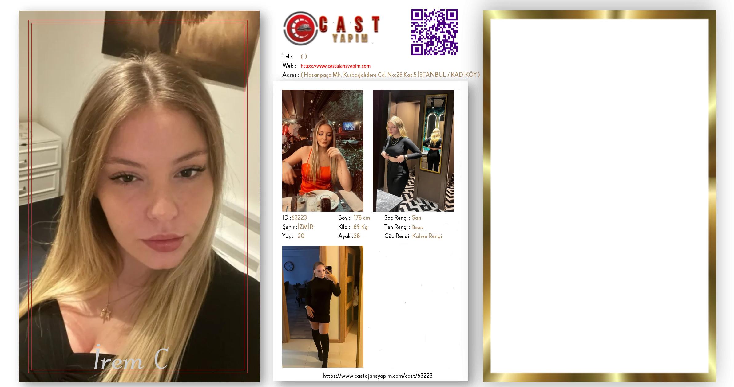 Merhaba, ben İrem C. İZMİR şehrinde yaşıyorum ve 20 yaşındayım. Genel özelliklerim arasında boyum 178 cm, kilom 69 kg, saç rengim Sarı, göz rengim Kahve Rengi, ten rengim Beyaz.