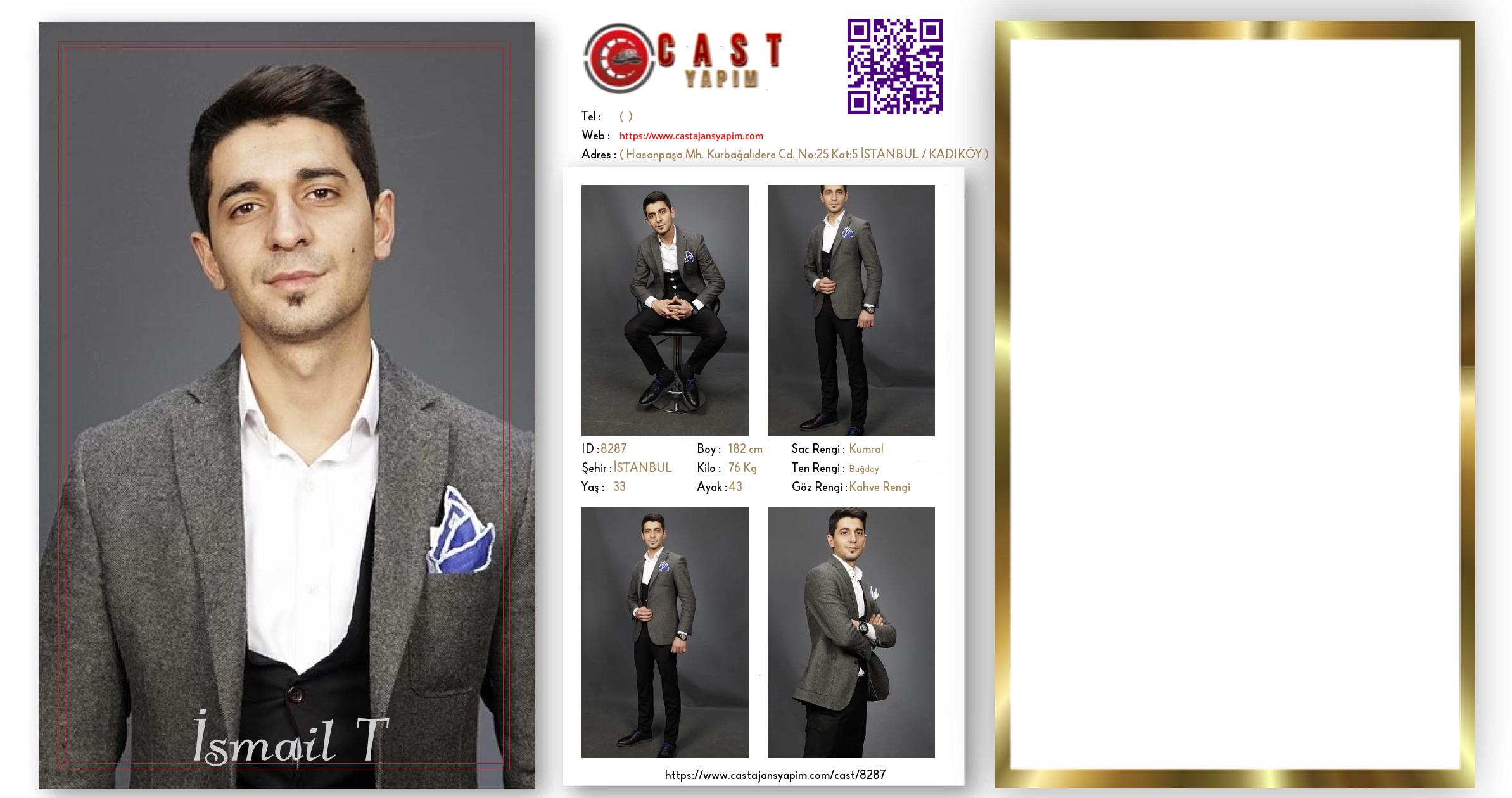 Merhaba, ben İsmail T. İSTANBUL şehrinde yaşıyorum ve 33 yaşındayım. Genel özelliklerim arasında boyum 182 cm, kilom 76 kg, saç rengim Kumral, göz rengim Kahve Rengi, ten rengim Buğday.