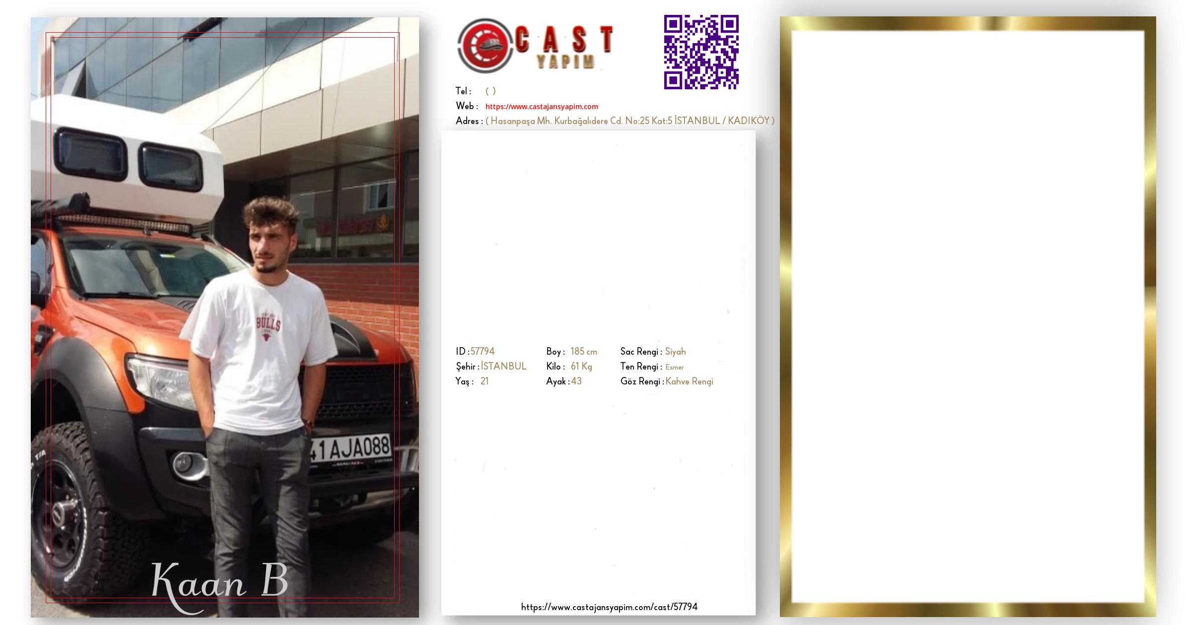 Merhaba, ben Kaan B. İSTANBUL şehrinde yaşıyorum ve 21 yaşındayım. Genel özelliklerim arasında boyum 185 cm, kilom 61 kg, saç rengim Siyah, göz rengim Kahve Rengi, ten rengim Esmer.