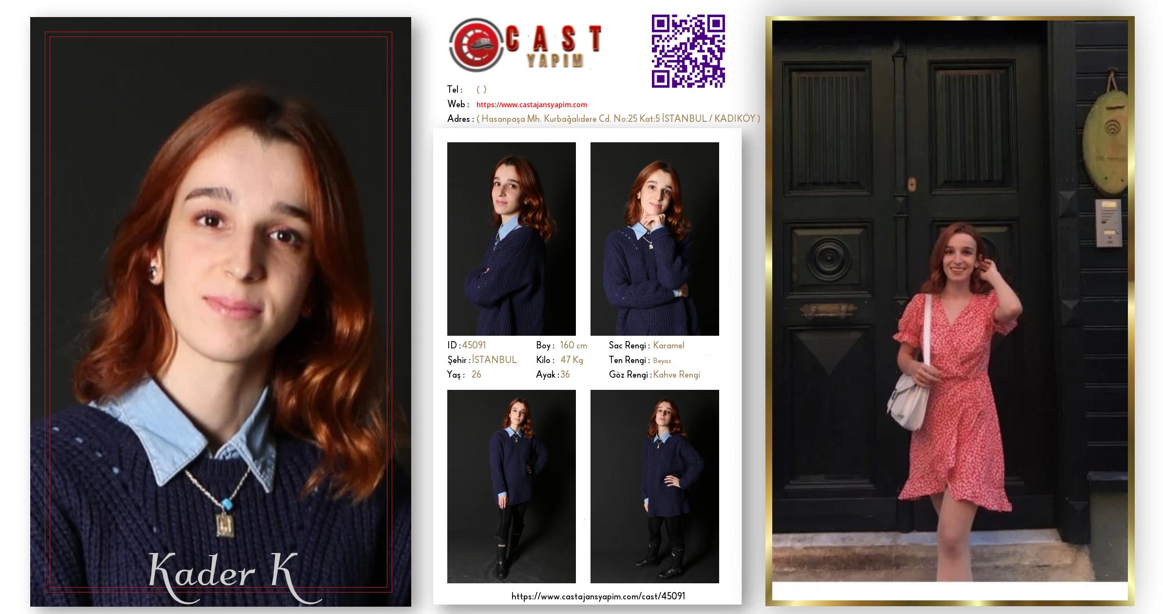 Merhaba, ben Kader K. İSTANBUL şehrinde yaşıyorum ve 26 yaşındayım. Genel özelliklerim arasında boyum 160 cm, kilom 47 kg, saç rengim Karamel, göz rengim Kahve Rengi, ten rengim Beyaz.
