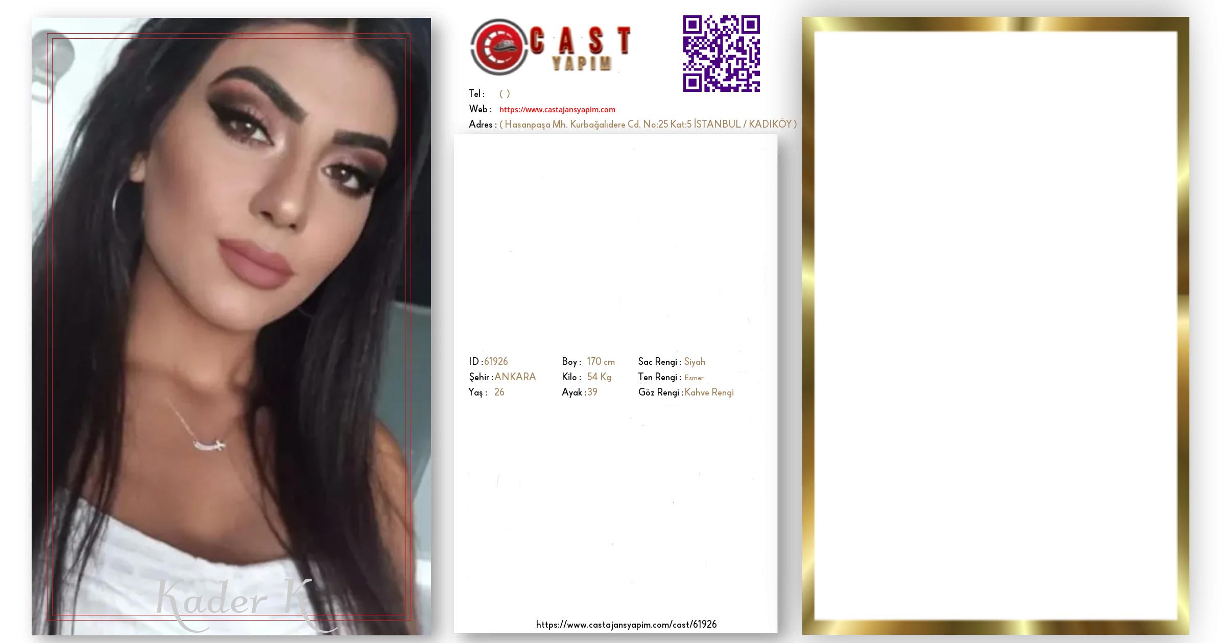 Merhaba, ben Kader K. ANKARA şehrinde yaşıyorum ve 26 yaşındayım. Genel özelliklerim arasında boyum 170 cm, kilom 54 kg, saç rengim Siyah, göz rengim Kahve Rengi, ten rengim Esmer.