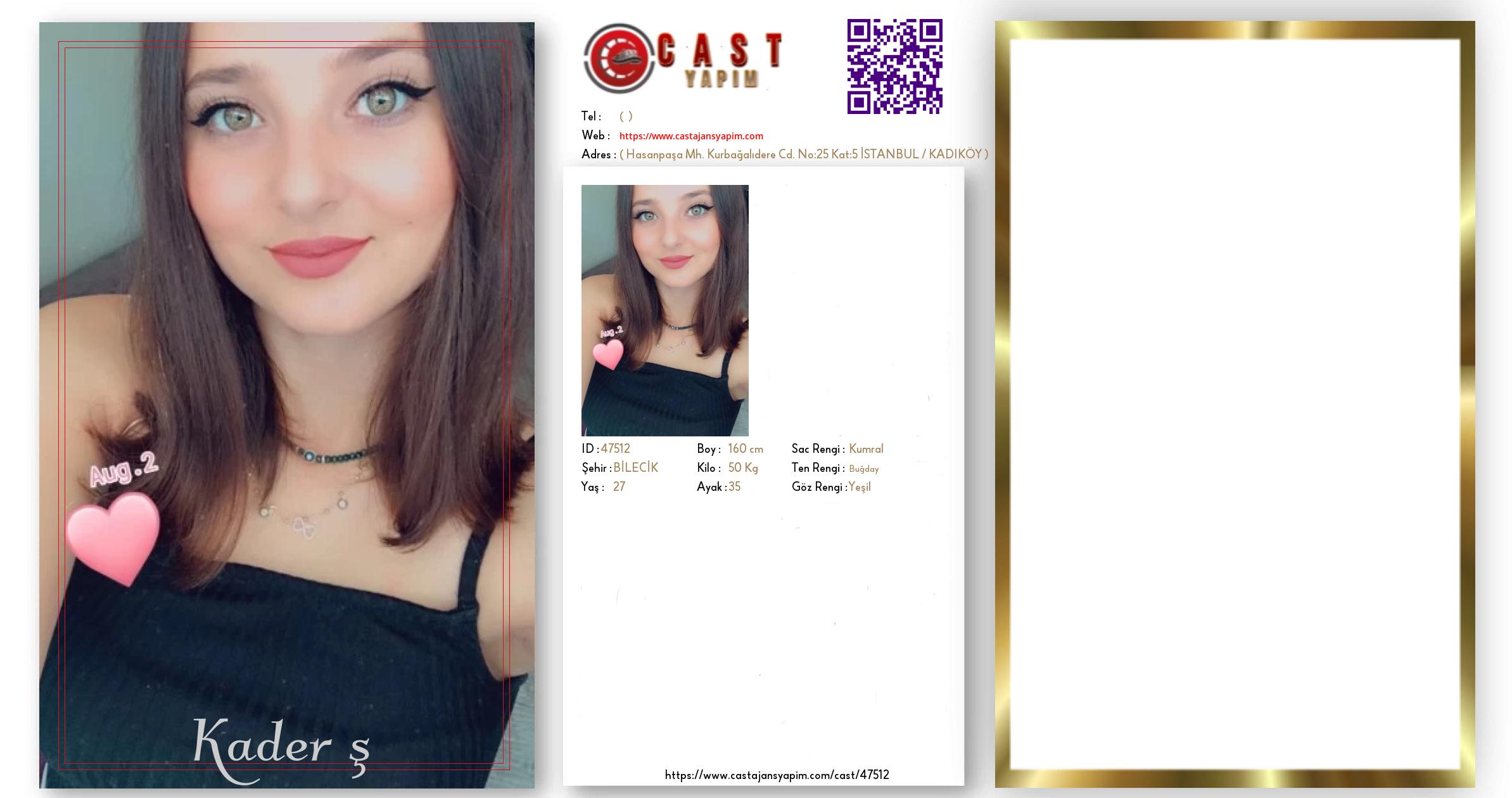 Merhaba, ben Kader ş. BİLECİK şehrinde yaşıyorum ve 27 yaşındayım. Genel özelliklerim arasında boyum 160 cm, kilom 50 kg, saç rengim Kumral, göz rengim Yeşil, ten rengim Buğday.