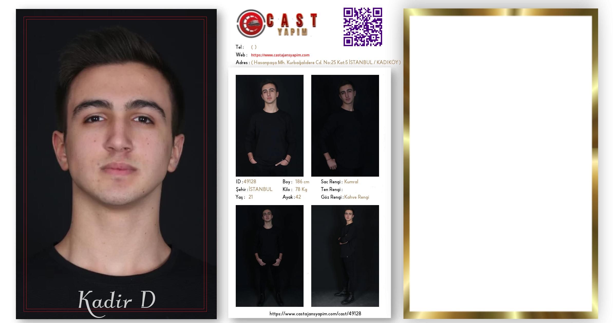 Merhaba, ben Kadir D. İSTANBUL şehrinde yaşıyorum ve 21 yaşındayım. Genel özelliklerim arasında boyum 186 cm, kilom 78 kg, saç rengim Kumral, göz rengim Kahve Rengi.