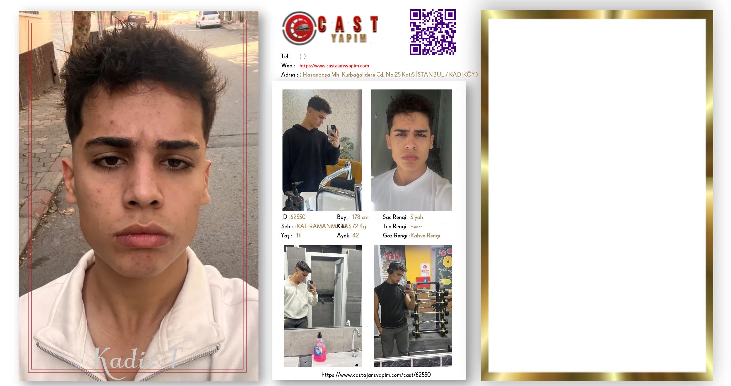 Merhaba, ben Kadir Efe. KAHRAMANMARAŞ şehrinde yaşıyorum ve 16 yaşındayım. Genel özelliklerim arasında boyum 178 cm, kilom 72 kg, saç rengim Siyah, göz rengim Kahve Rengi, ten rengim Esmer.